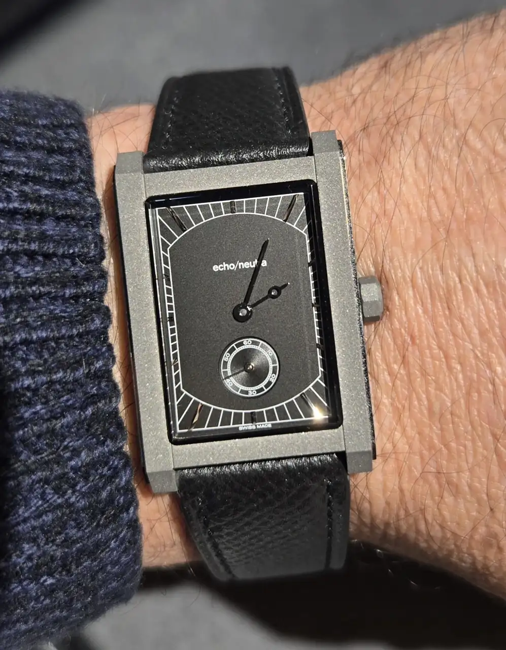 ID GENEVE, una marca increíble. Esta es la marca en la que invirtió Leonardo Dicaprio, reconocido por su espíritu ambientalista, me explicaba el asesor qué todo es de material reciclado de alta calidad, acero inoxidable reciclado de fábricas, fibra de carbono también reciclada para las esferas, las correas también, solo hacen producción limitada para no tener sobrestock y no consumir material innecesario, tremenda propuesta. Y los relojes se sentían de excelente calidad y construcción