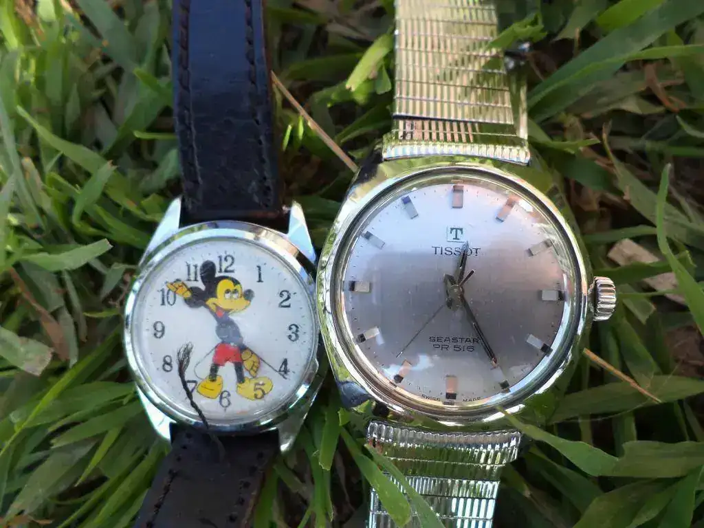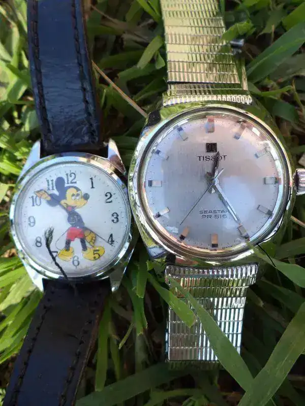 Les dejo una pobres fotos, para que ustedes también lo disfruten. El Mickey, como pueden ver, está acompañado por su padrino, el formidable Tissot Seastar PR516 calibre 781 - un fierrazo -.