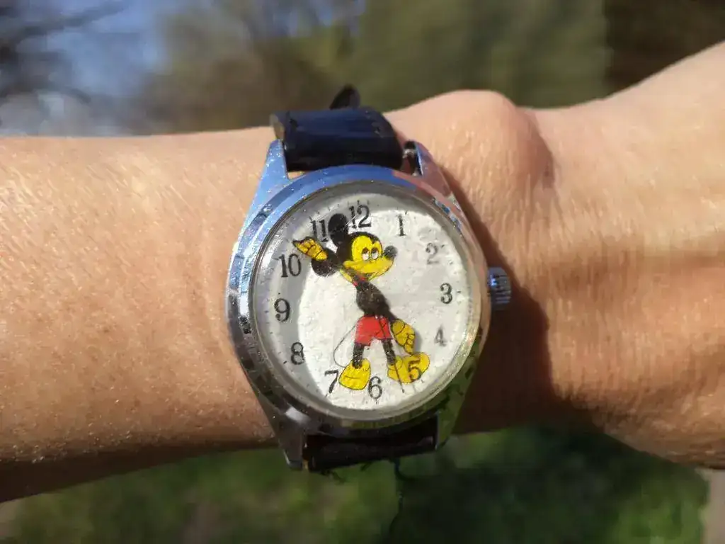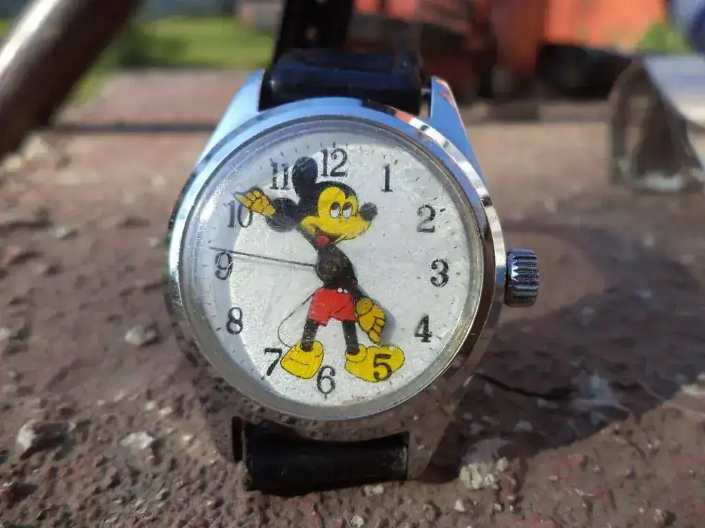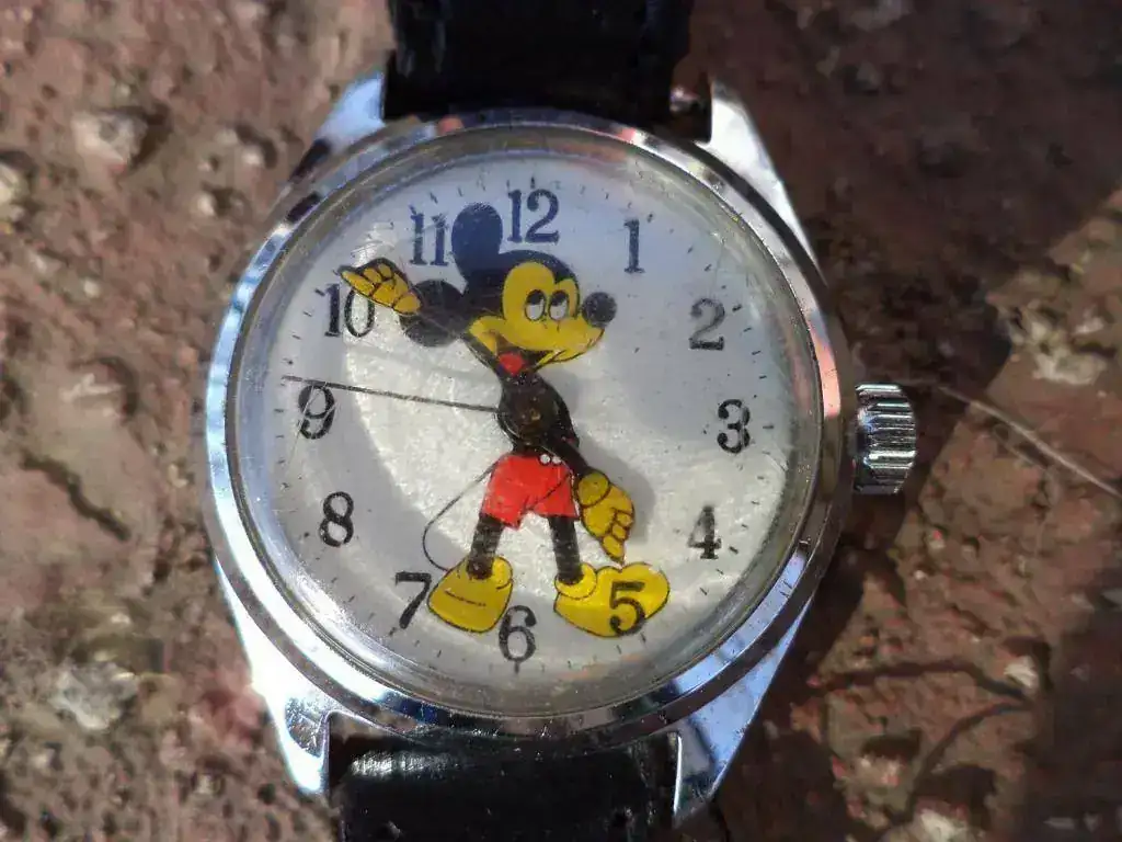 La pieza que aquí me ocupa es muy especial. No por la pieza en sí, que es un modestísimo reloj de franchising de factoría Disney con calibre pobretón... La pieza, monetariamente hablando, no tiene valor. Pero en su esencia e intención, es amorosa a mis ojos y corazón, porque me la ha regalado una de las personas que mas quiero y que más está influyendo en mi vida. Pero además, este sencillo Mickey está ocupando un lugar que faltaba en la modesta caja colejuntadora tristansuarense: el lugar que merecen los relojes infantiles.