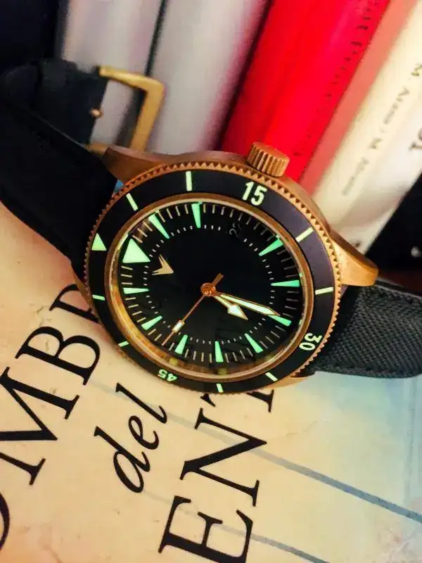 VENTUS WATCHES, desarrollada un año después, 2015 también por Alshan Tan asociado esta vez a un coleccionista de relojes, llamado Shane. Fruto de ello nacerían tres modelos inicialmente, un tipo piloto WWII “The Caspian” con caja de laton. “The Black Kite” también piloto pero actualizado con caja de fibra de carbono “Darkwood” y estructura interna de acero. Y por último en 2017 el diver “M-2V , Mori Brass Diver”, caja latón y 300m wr. Todos con calibres robustos NH35. Este ultimo es el que yo poseo, un reloj cuyo bisel y dial forman la alineación de 3 flechas, tal y como relata la parábola tradicional japonesa del Noble del siglo XVI “Mori Motonari”. Este dio a cada uno de sus 3 hijos una flecha, y les pidió que la rompieran, los 3 lo hicieron, luego hizo un “haz de 3 flechas” y les pidió que lo rompieran, ninguno pudo. La conclusión era que si permanecían unidos en el futuro, nadie podría derrotarlos. Esta parábola da nombre al modelo. Se sirve con caucho y una “Sailcloth” o Tela de barco.