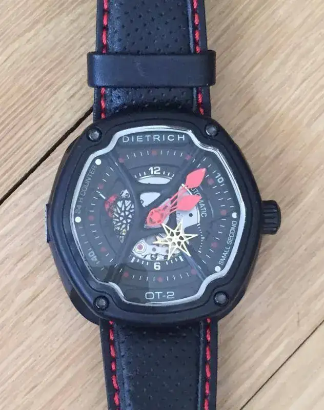 Emplea en este modelo OT2 un Miyota 82S7 esqueletonizado, con su segundera transformada en una estrella giratoria. Caja de acero PVD y correa de cuero-nylon impermeable tipo NATO que pasa por sus asas fijas. Intercambiable con tras de divesos acabados. Recientemente incluso han creado su propia compilación con el modelo “Perception”. Es un reloj que llama la atención y otorga un toque de exotismo muy difícil de conseguir.