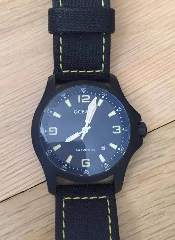 Ocean 7 Watch Co. Empresa americana con relojes diseñados sobre la base de modelos diver/militares. Ofrecen calidad, Luminiscencia espectacular, y sobretodo resistencia. Ahora realiza una réplica del Omega SM 600 PloProf, con muy buena prensa. Mi unidad es uno de sus primeros modelos, el Meteor de 2015. Reloj robusto en edición limitada a 225 uds., con cal. 2824, caja 44mm 200m wr de Titanio con DLC (recubrimiento mas resistente que el PVD), Luminiscencia con Lummi Brght (Tritec). En su completa caja incluía, 4 correas : Cuero natural, Silicona, NATO y una de Kevlar (la que muestro en la foto). Vamos un reloj para ir a la guerra!!