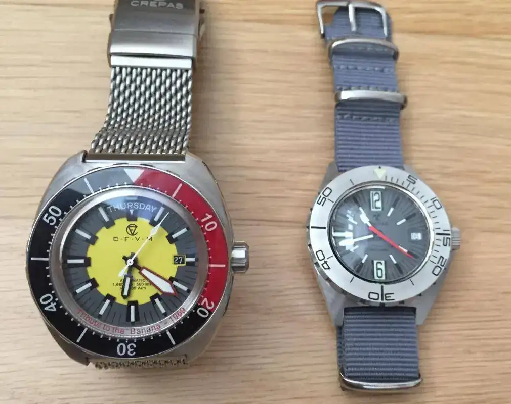 CREPAS, marca que no necesita presentación en este Foro. Sinónimo de Diver de calidad con diseño espectacular. Unidades limitadas y algunos modelos que empiezan a cotizarse fuera de nuestras fronteras. Mis CREPAS son “Tribute to Banana” (homenaje al Omega SM 200 Banana), limitadas a 300 uds. en 2015, y el Tornado (homenaje al Sandoz TYPHOON), limitadas a 399 uds. en 2017.
