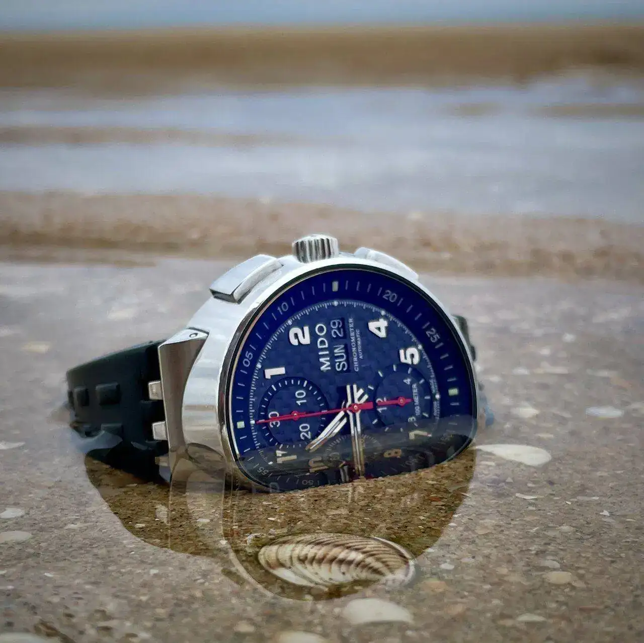 Se trata de una característica caja troncocónica con un cristal antireflejos único, una esfera de carbono, y una máquina infalible; una 7750, que ya sabéis que vibra con contundencia al ritmo de su volante de inercia. Es una verdadera delicia. Os dejo las fotos y espero que os gusten.