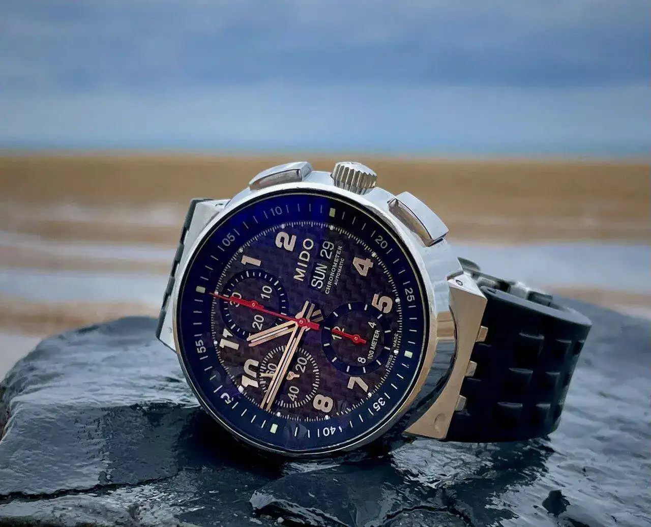Se trata de una característica caja troncocónica con un cristal antireflejos único, una esfera de carbono, y una máquina infalible; una 7750, que ya sabéis que vibra con contundencia al ritmo de su volante de inercia. Es una verdadera delicia. Os dejo las fotos y espero que os gusten.