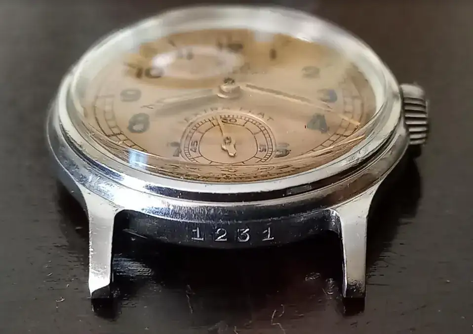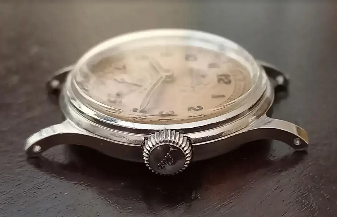 La caja Borgel con bisel plano tipo Calatrava de Patek Ref. 96, "Stepcase", fondo de rosca decagonal, corona original firmado MIDO, también conserva la hebilla original. ¡Qué suerte!