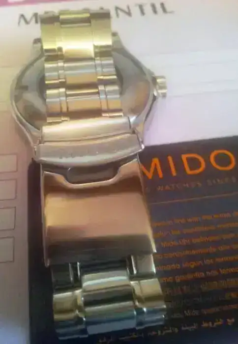 Tiene toda su dotación completa, caja exterior, bombonera negra-amarilla MIDO, eslabones sobrantes, manual de instrucciones y tarjeta de garantía de Concesionario Oficial fechada el 08/02/13.