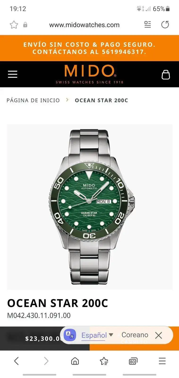 Ahora que están tan de moda los verdes, acabo de ver este Mido en verde con un precioso dial simulando olas y bisel cerámico de color verde también.