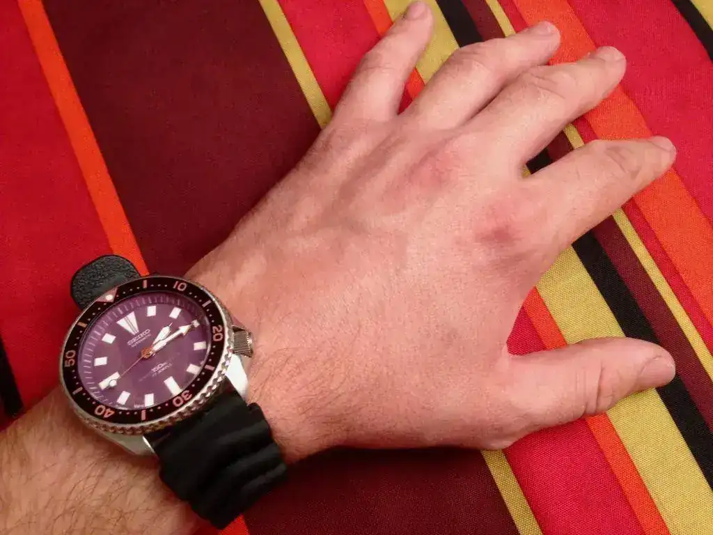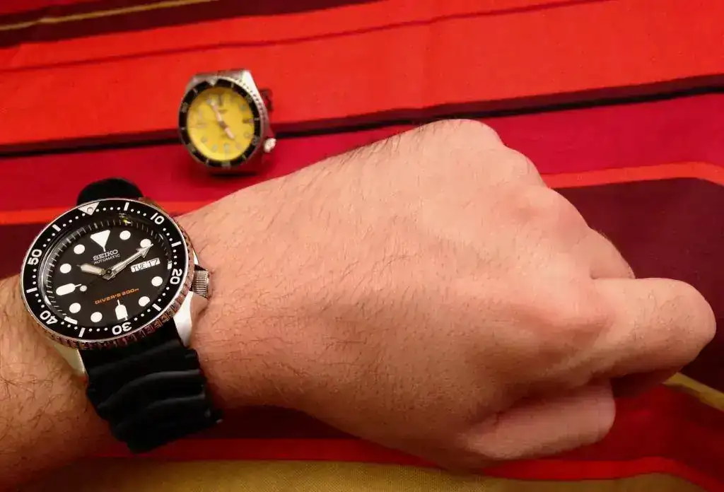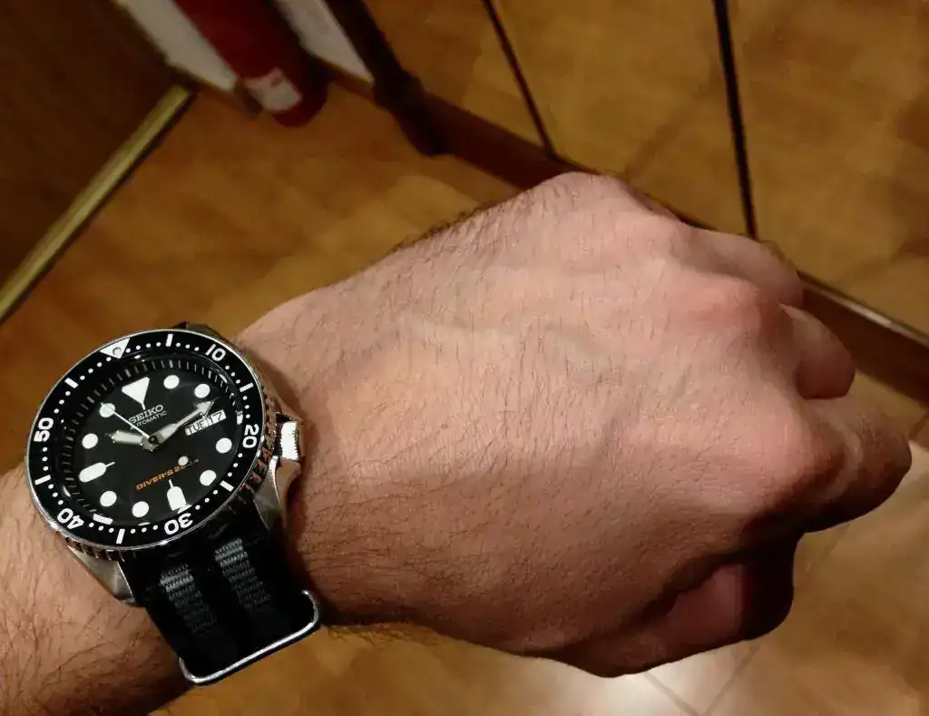 Mi última adquisición tiene una larga y tortuosa historia, pero, por fin, lo he conseguido. Después de casi un año queriendo adquirirlo me decidí este mes de septiembre y, por fin, tengo un Seiko SKX007. Quería haberlo adquirido por unos 150-200€, pero ya estaban subiendo demasiado y rozaban los 250€ (nuevos a estrenar, por supuesto y hablamos del mes de enero o así). Decidí esperar, para comprobar si comenzaban a bajar de precio (este reloj siempre ha tenido sus altibajos), pero desde este junio-julio, e incluso algo antes, ya estaban comenzando los rumores de la finalización de su comercialización definitiva y la gente comenzó a volverse loca y a especular con los precios de este reloj. No sé qué precios llegarán a alcanzar, pero no he querido esperar mucho más y contentísimo estoy con el. Ahora ando esperando recibir el Jubilee original que he pedido y con el que quería adquirirlo inicialmente (lo he adquirido con correa de caucho).