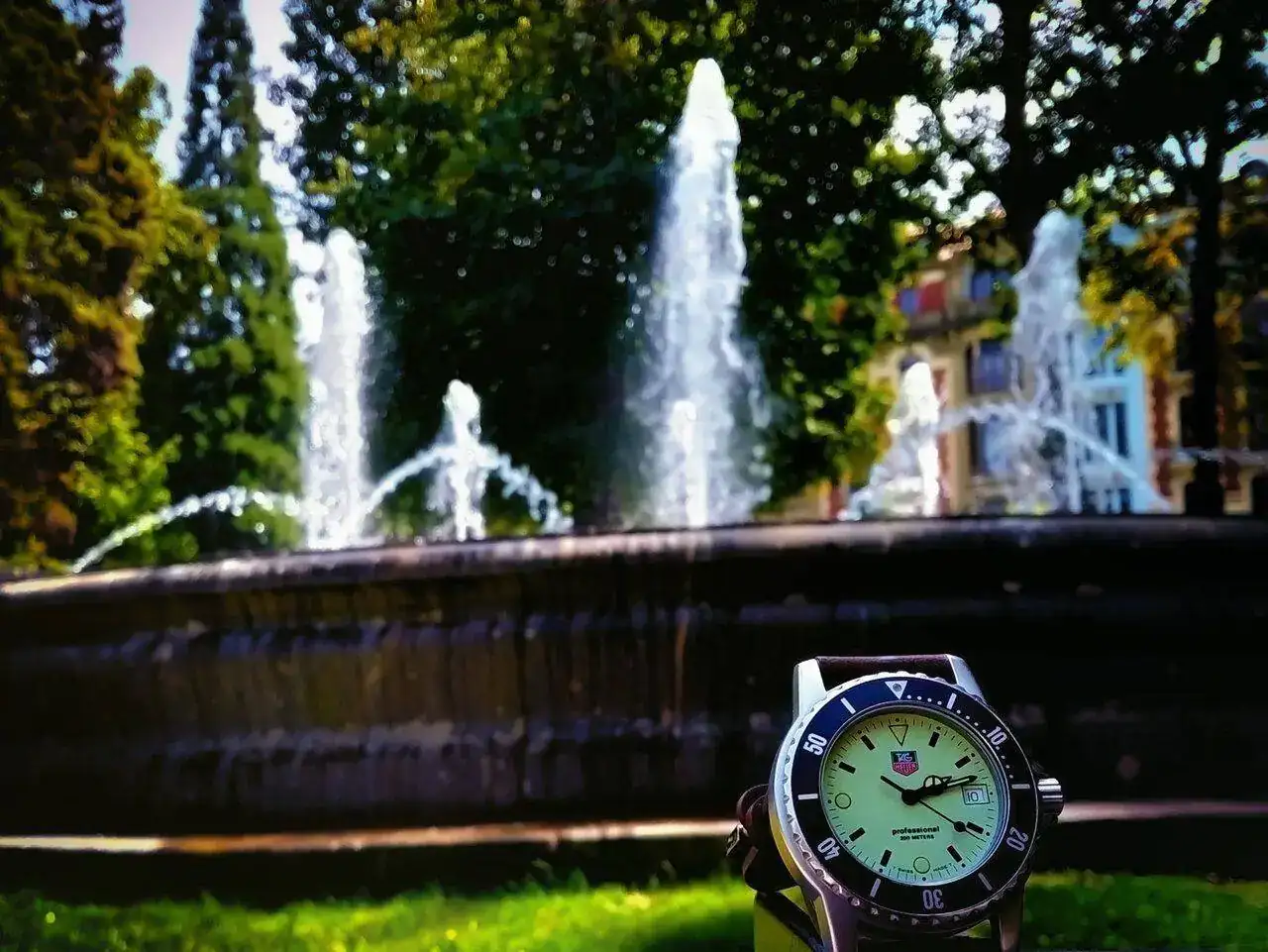Muy buenas fotos..Hoy hace en Oviedo un calor inaguantable + de 30º con esta humedad....asi que lo mejor irse a un lugar fresquito y beber de alguna fuente, ya que estaba me puse el reto de hacer fotos al reloj con el que sali de casa buscando sitios que me gustasen pero con un tope de 10 minutos (tampoco es cuestión de liarse mucho que es casi la hora de comer). comencé a las 14:04 y la ultima a las 14:14h. para 6 fotografías me dio tiempo, lo interesante de hacer fotos a este reloj es que al tener lumen tanto en la esfera como en las agujas y de tonos diferentes según la luz que le de siempre parece un reloj diferente