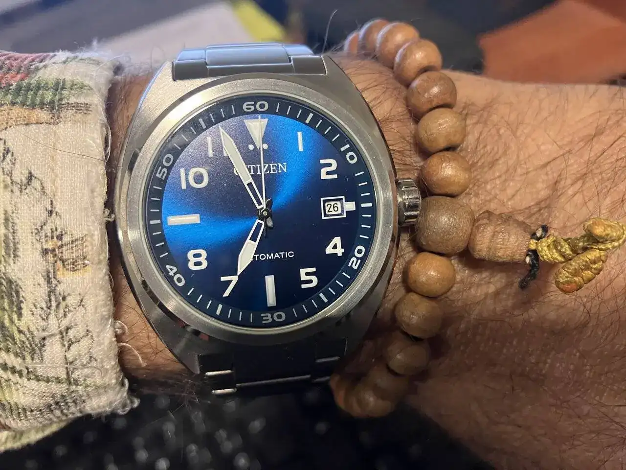 Gran reloj ese Citizen. Dicha pieza forma parte desde hace ya tiempo de mi colección. Tiene caja tipo tortuga y es duro como una piedra, además de poseer una esfera preciosa. Un saludo!Hoy este japo muy azulito de dial. Con buena precisión y muy legible.