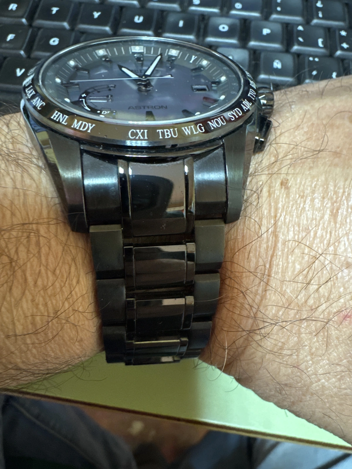Hoy saco un Seiko Astron edición limitada, hecho en cerámica y titanio y con esfera madre perla.