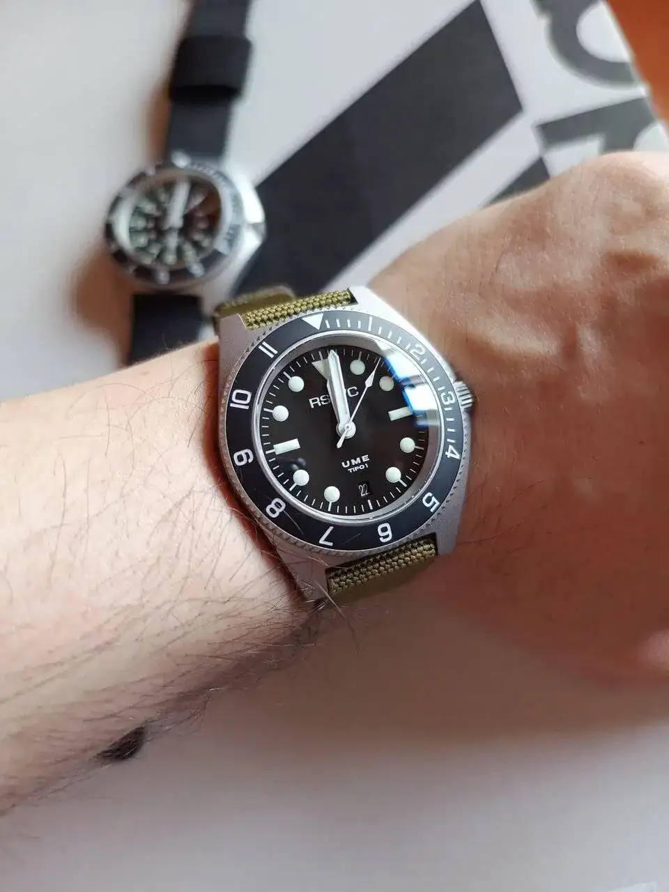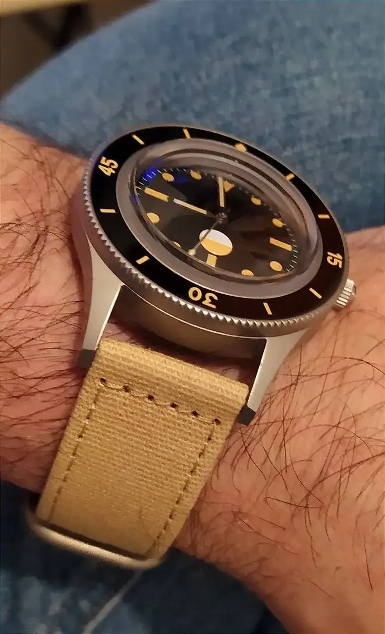 Ahora parece que hay una moda de teñir los relojes de ese color ocre tan feo para que parezcan "vintages".Sobre todo Steeldive, que lo peor no es lo tostado del ocre sino que entre bisel , dial , indices y agujas hay 5 tonos de ocre distintos. Terrible.