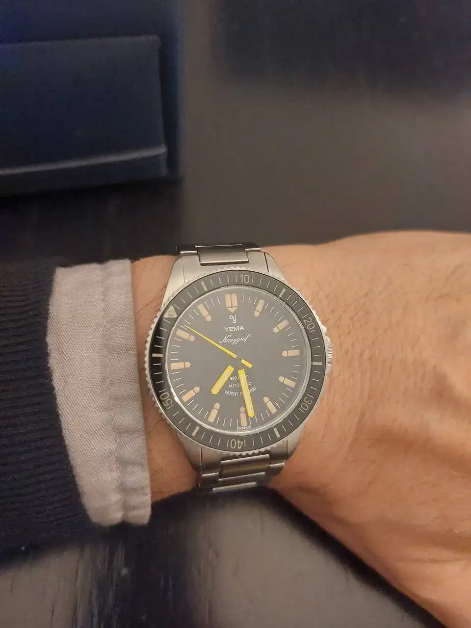 Yema Navigraf. Me gusta la estética vintage, en relojes modernos. Este me pareció especialmente bonito.