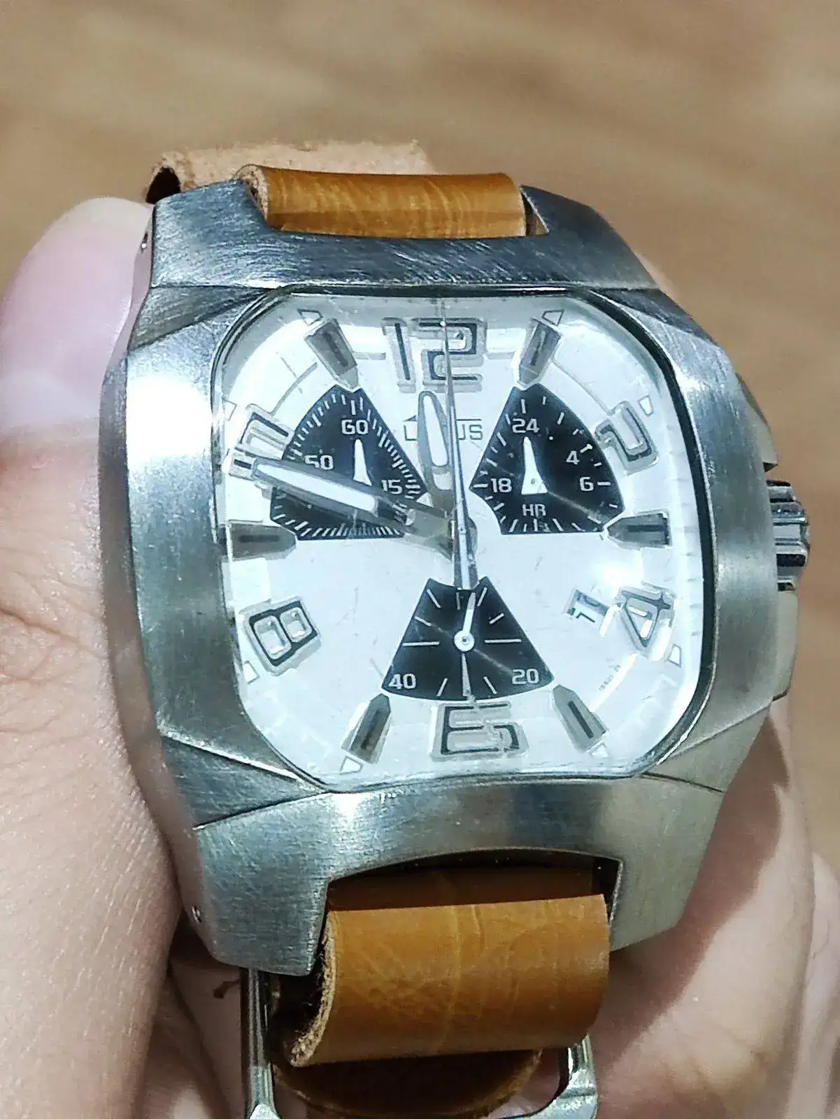 El primer reloj qué voy a mostrar es el que lo empezó todo. El reloj qué lleve por primera vez en algún curso tardío de la primaria y durante mucho tiempo el que me acompaño en numerosas salidas a lo largo del instituto. Fue de mi padre, no le dio muy buena vida y en cuánto tuve ocasión me lo apropié. Con el paso del tiempo no ha envejecido muy bien y el intento de restauración fue desastroso. Creo qué está destinado a vivir en un cajón. Aquí una foto del Lotus Code 15501/1: