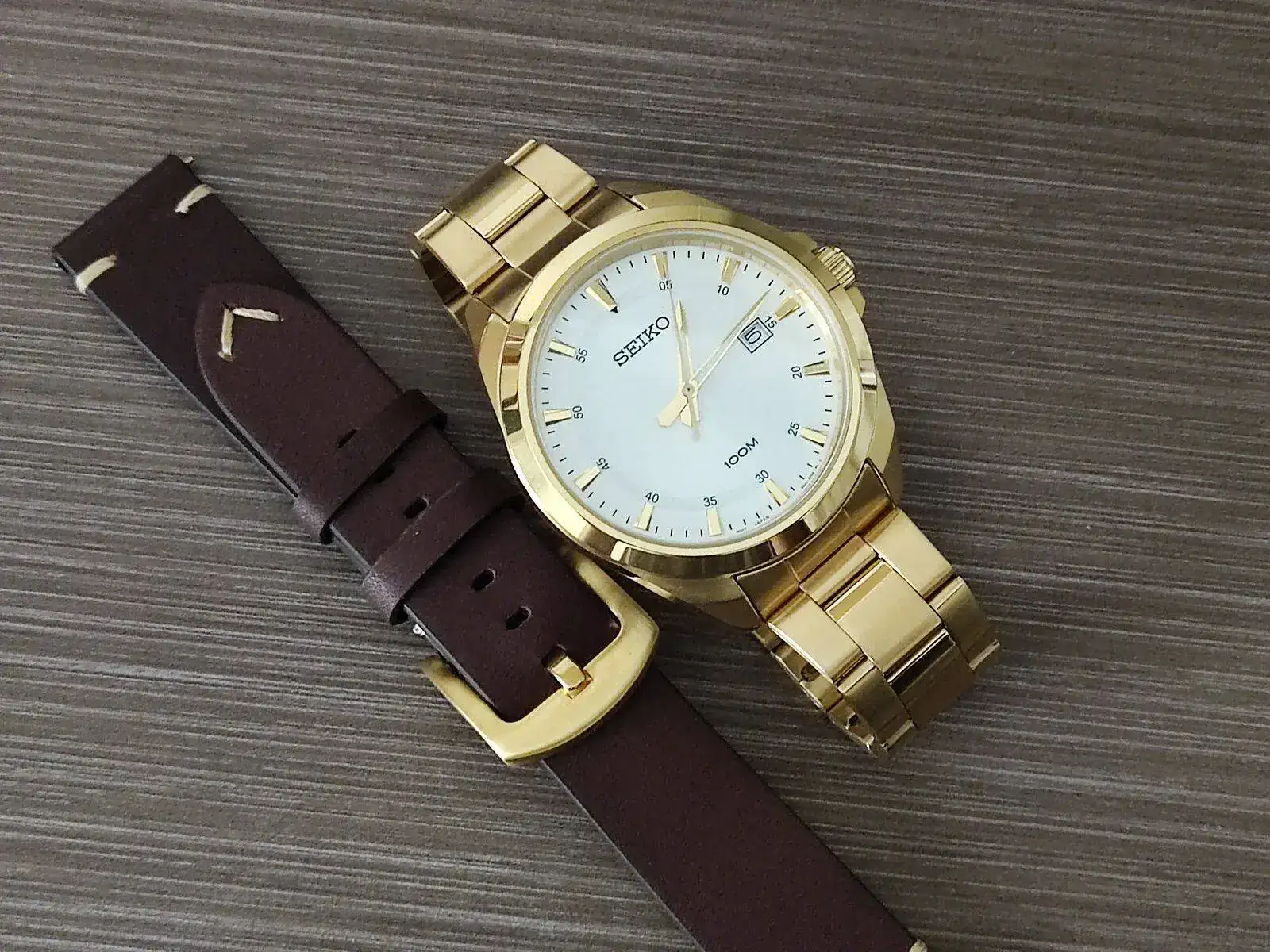Entonces probé con dos Seiko. El primero fue un intento de redimirme de los relojes dorados. No lo conseguí. Algún día encontraré uno con el que me sienta cómodo.