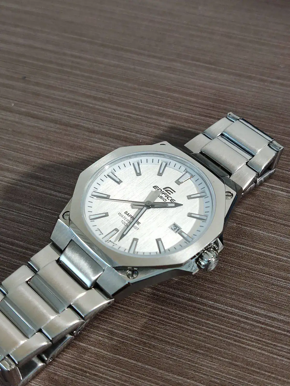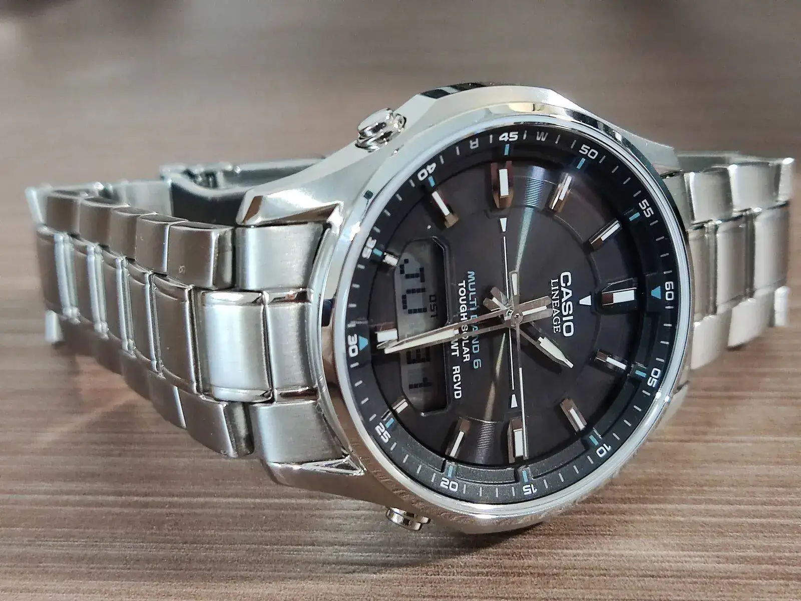 El último en llegar fue un Casio Lineage, radiocontrolado. Quería una esfera negra y preferiblemente un diver pero acabó siendo gris y 5 atm... es que le tenía echado el ojo desde hace tiempo y no le di más vueltas. Me gusta mucho su esfera rayos de sol ya que produce una difracción de colores preciosa, el brazalete está muy bien y tecnológicamente me encanta. Me lo veo algo pequeño, son 40mm pero el lug-to-lug es tan reducido qué me lo veo raro. Aún así es una pasada y ver cómo las agujas se mueven es un espectáculo, además de que cuadra perfectamente la aguja de los segundos con los índices.
