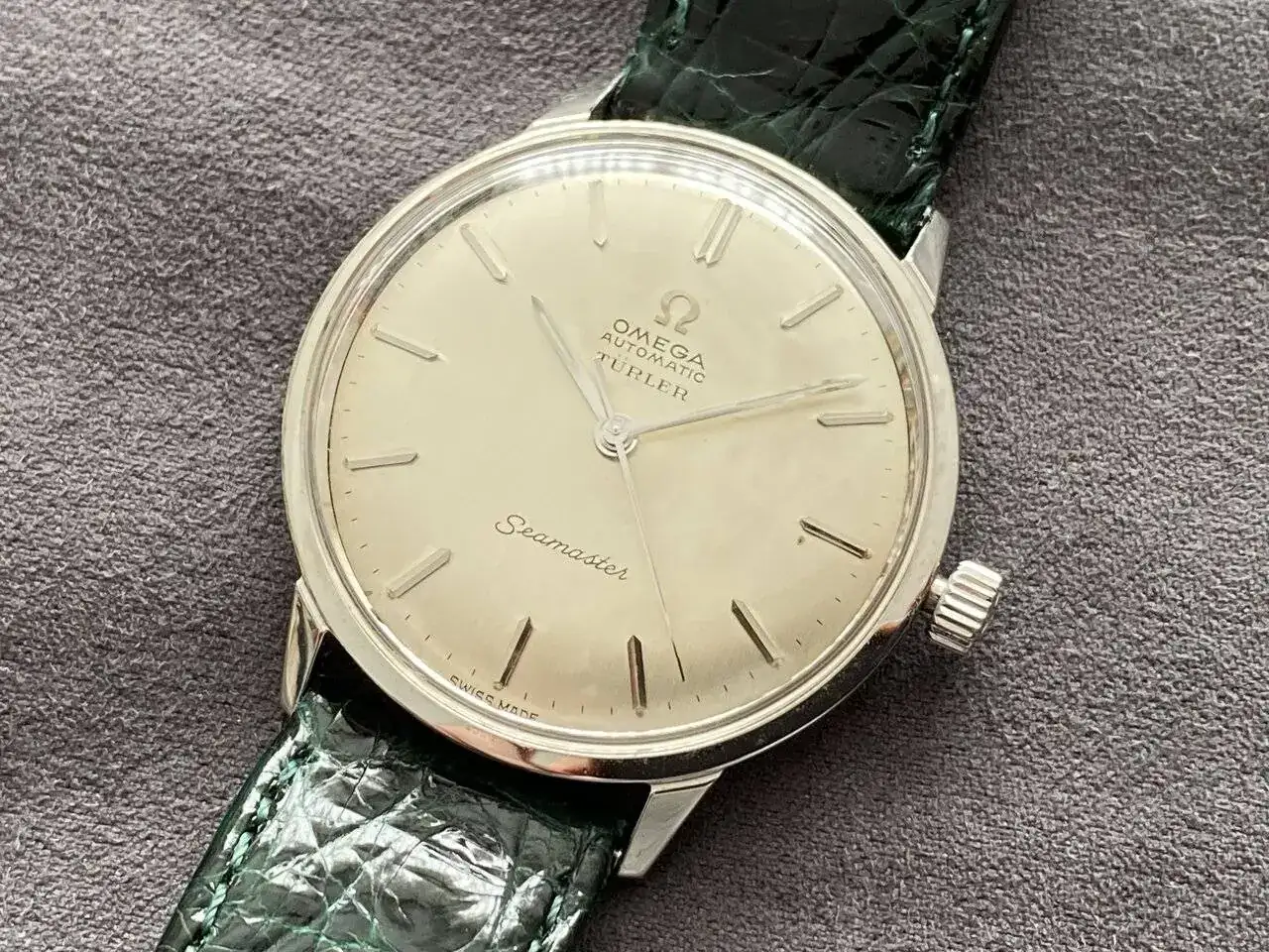 El Omega Seamaster es el de mayor valor sentimental porque perteneció a mi abuelo y lo llevó luego mi padre. Por esa razón, en 2020 lo envié a revisión a Omega, en Suiza, donde le dieron un trato respetuoso y lo dejaron en un estado impecable, con la garantía de que los recambios -corona, cristal y manecillas- son originales y del mismo estilo que los de la época. Fue un modelo que gozó de mucha popularidad y por eso no escasean, aunque encontrarlos en muy buen estado es ya harina de otro costal. Este tiene además la particularidad de que mi abuelo lo compró en la joyería-relojería Türler, de Zurich, y de ahí que la esfera venga firmada también con el nombre de ese prestigioso establecimiento suizo.
