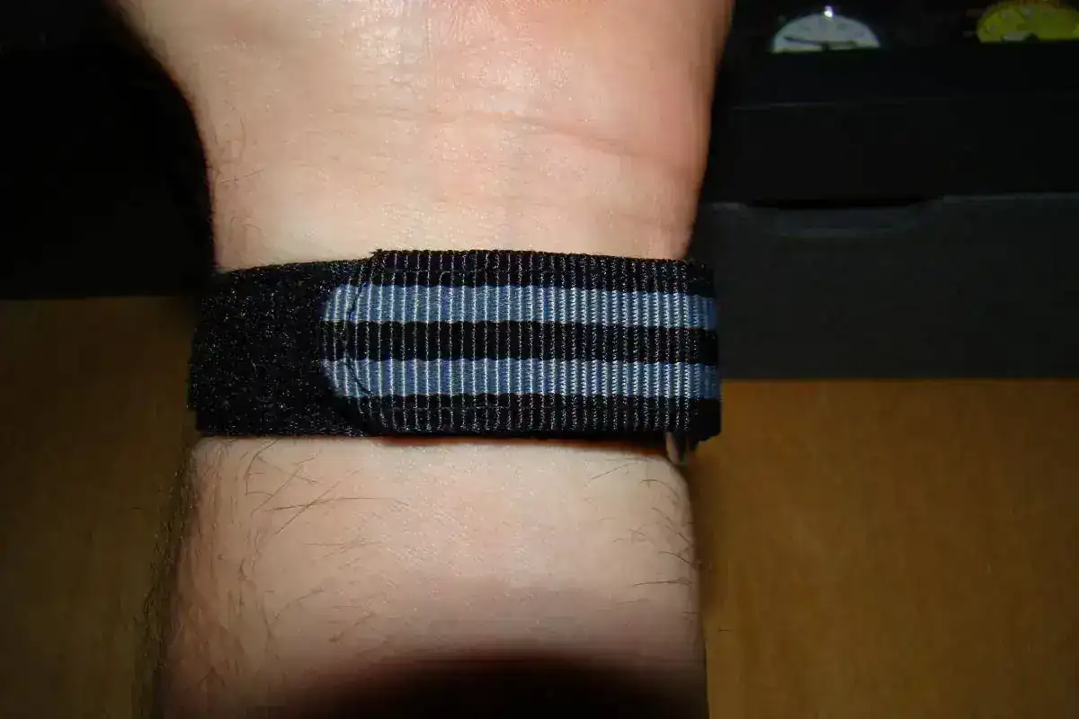o un poco justillas. Mi muñeca es aproximadamente de unos 18 cm. A continuación como queda en el PH200, para que quede con ese margen de velcro "enganchado" he tenido que apretarlo al máximo. Y no es cómodo tan apretado para mi gusto. Fallo mio por bullas.