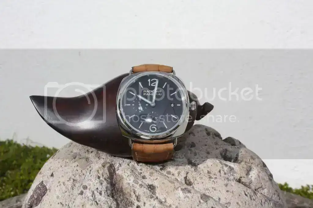 Y por último, dándole rienda suelta a mi debilidad por Panerai y después de que no llegó mi deseado 346 me tuve que conformar con este 323. De los pocos Ramidomir de 47 mm que no es edición limitada, automático con una reserva de marcha de 10 días, segundo uso horario (no GMT) y fechador. Me encanta su correa de cocodrilo mate. Qué decir, para mi mantiene ese aire simple de panerai (el indicador de día/noche es muy discreto) y la reserva de marcha alfrente creo que se integra muy bien al dial. En conclusión, toda una paellera de Panerari