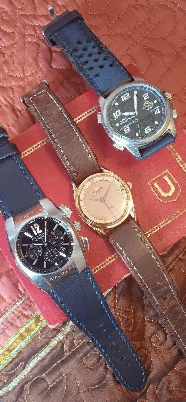 Mi pequeña colección de ponibles, el Polerouter Date en oro rosa de mi padre, que me pongo bastante, aunque con cuidadito, el ahora siempre puesto Bulgari Ergon, y el nunca me falla Orient ana digi, el breitling de los pobrecitos...