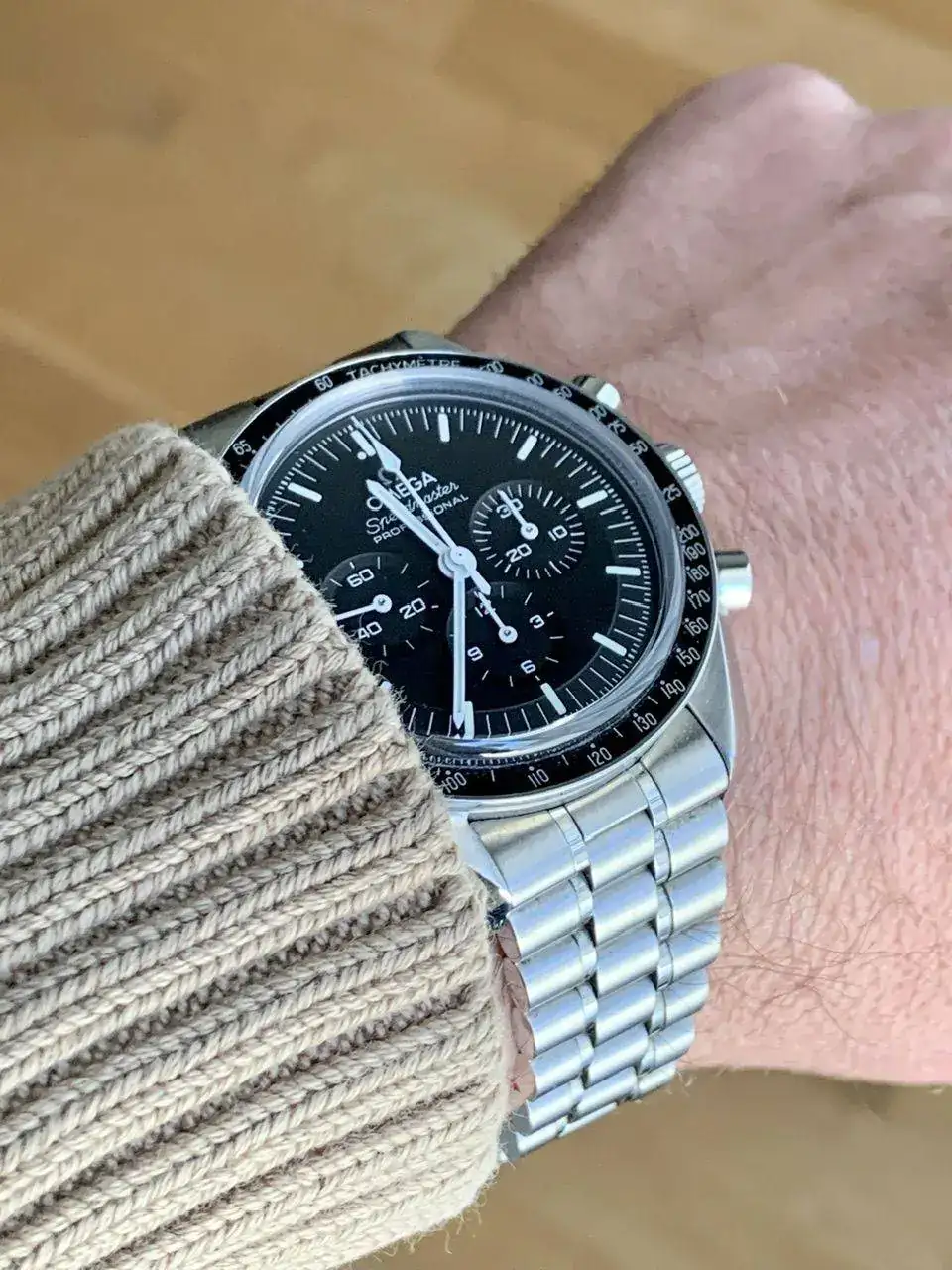 Sin embargo con el nuevo modelo fue probármelo y enamorarme; brazalete super cómodo que dejaba el lug to lug del reloj en menos de 48mm, logo aplicado en la esfera (modelos doble zafiro), caja exactamente igual a la que pisó la luna (al menos el que llevaba Aldrin), certificación metas y varios detalles mas que me hizo olvidar el remonte manual y que no llevase fecha.