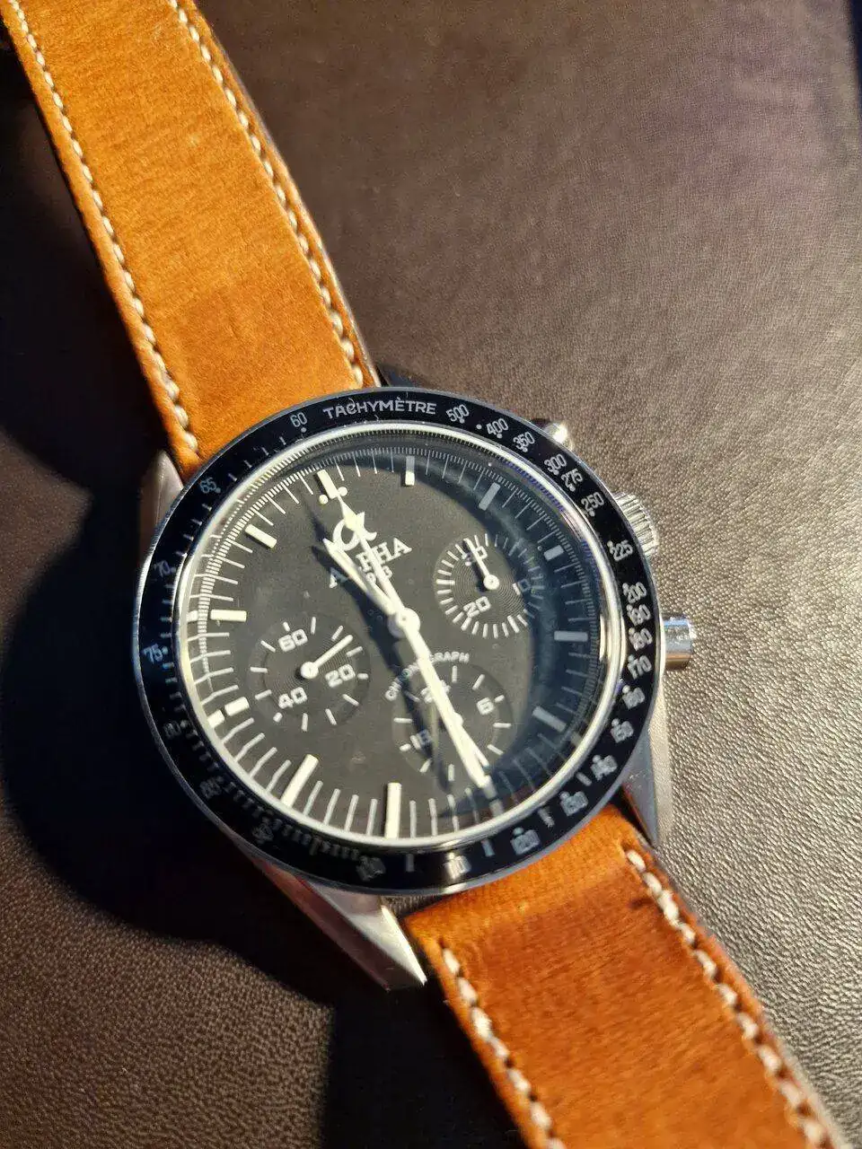 El lunes recibi un Alpha que me apetecia mucho tener a raiz de leer el post de otro compañero. Se trata del consabido y controvertido Alpha moonwatch, homenaje chino a un grial de muchos de nosotros, el Omega Speedmaster.