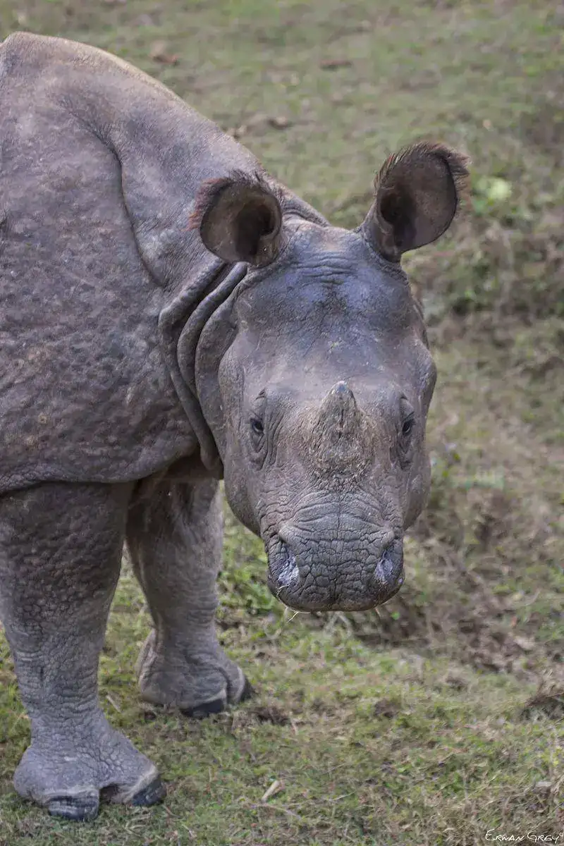 (Rhinoceros unicornis) una maravilla de la naturaleza que ha sobrevivido millones de años sin apenas modificar su estructura, debido a que su ecosistema tampoco ha sufrido muchas modificaciones (es decir, que el hombre no llegó hasta hace muy poco a estas zonas) con un peso de hasta 2.200kg casi 2 metros de altura y casi 4 metros de longitud, pueden alcanzar los 56km por hora de velocidad (eso si, en tramos cortos). Fijaros en su piel, que todavia mantiene una textura como si fuera de escamas o de coraza (como los Pangolines).