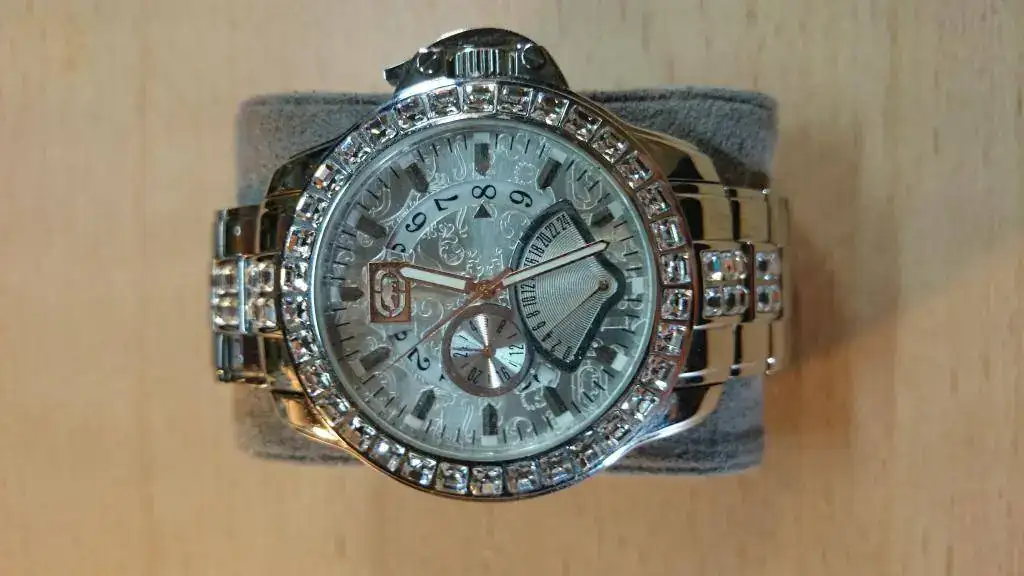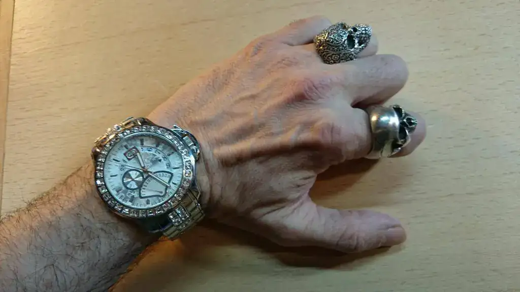 En materia de relojes tiene una linea de estética mas o menos incalificable. Debajo de toda esta opulencia hay un Timex pues los relojes Marc Ecko pertenencen al grupo Timex. Cuarzo aunque los hay automaticos. Calibre no se...8mm Smith&Weson, supongo.