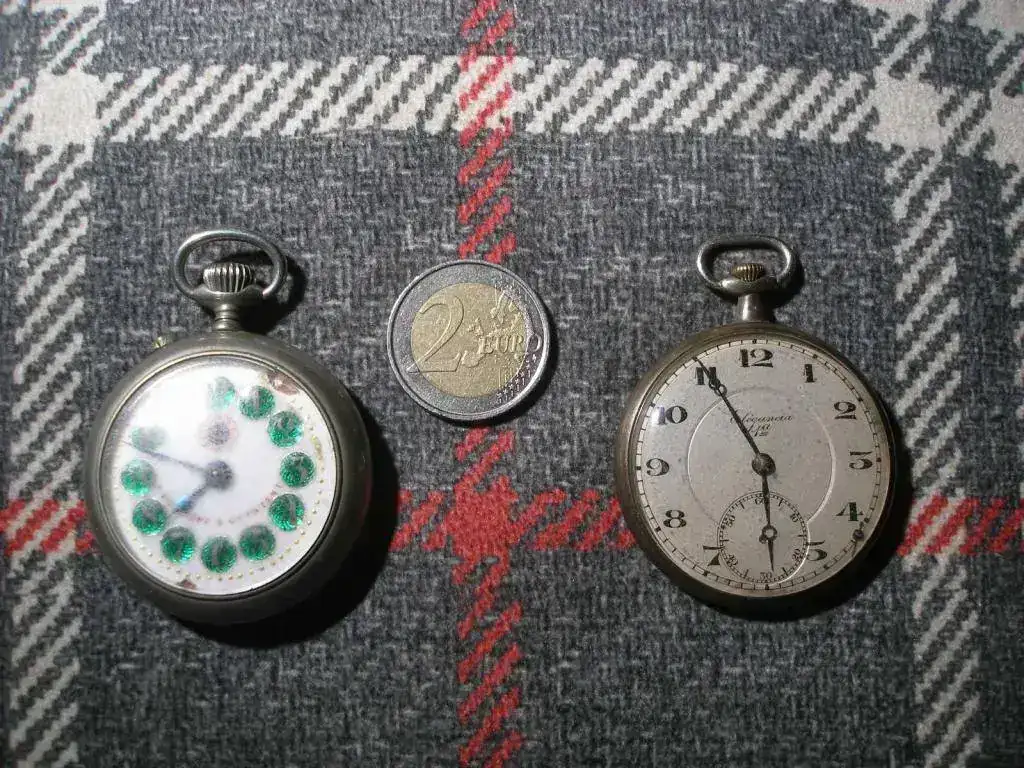 Quisiera presentaros mi colección de relojes de bolsillo antiguos, un podómetro y uno de muñeca de los años 70.