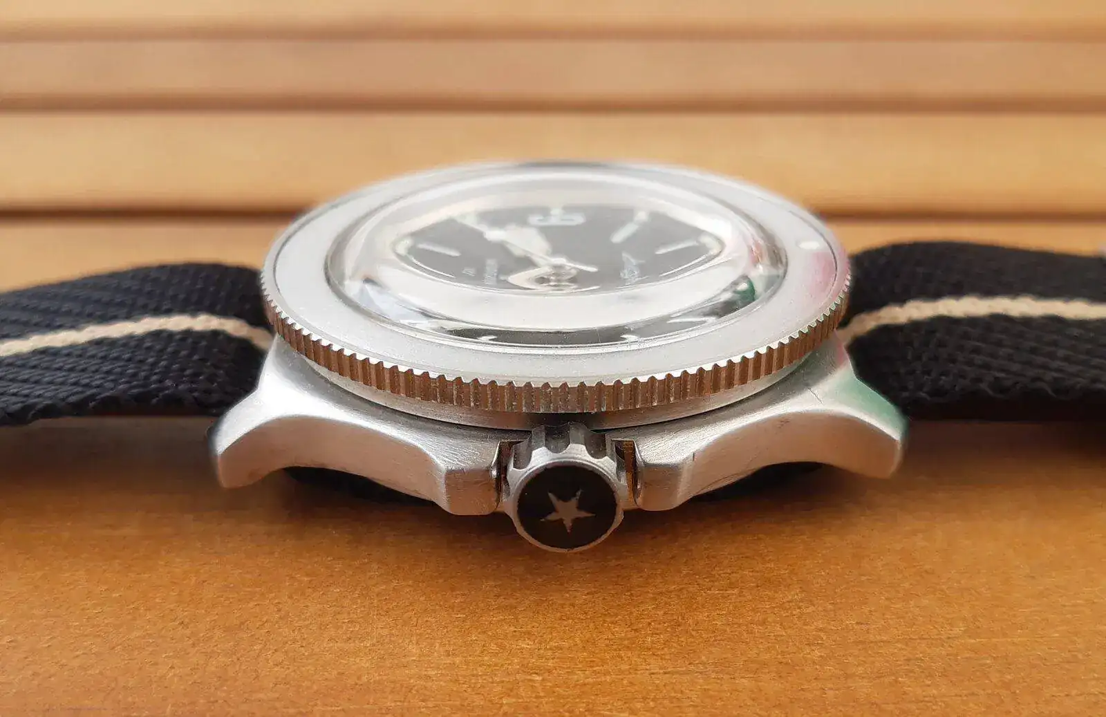 Es el que llevo cuando voy al mar. Con una segundera MM donada por otro camarada. Movimiento manual recuperado. En cierto modo también responsabilizo a Juanma por este Modstok debido a su insistencia en los relojes azules.