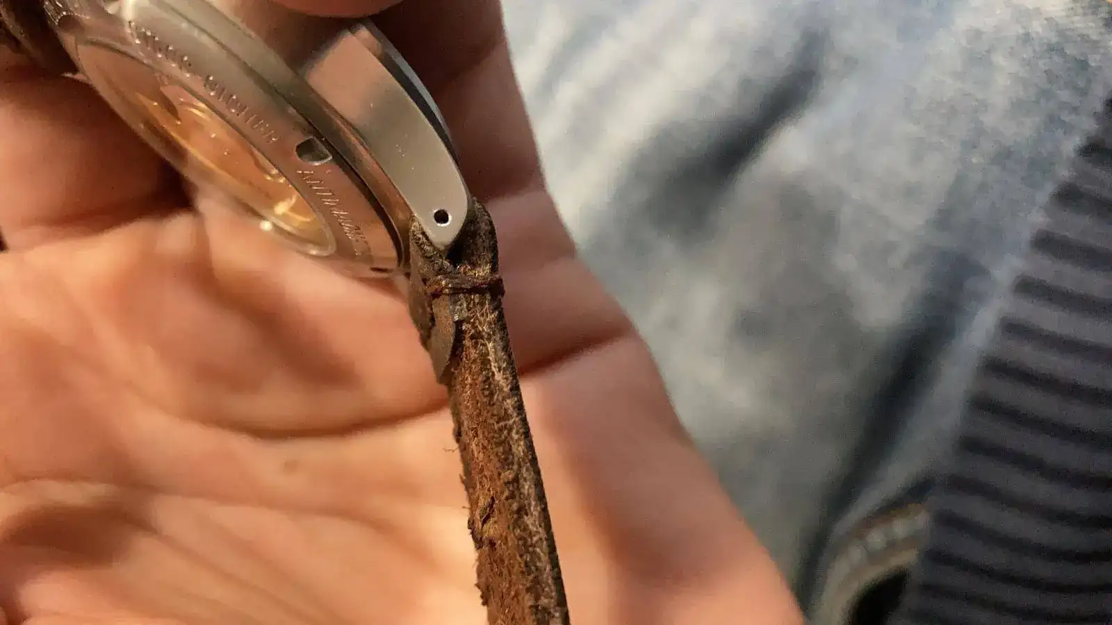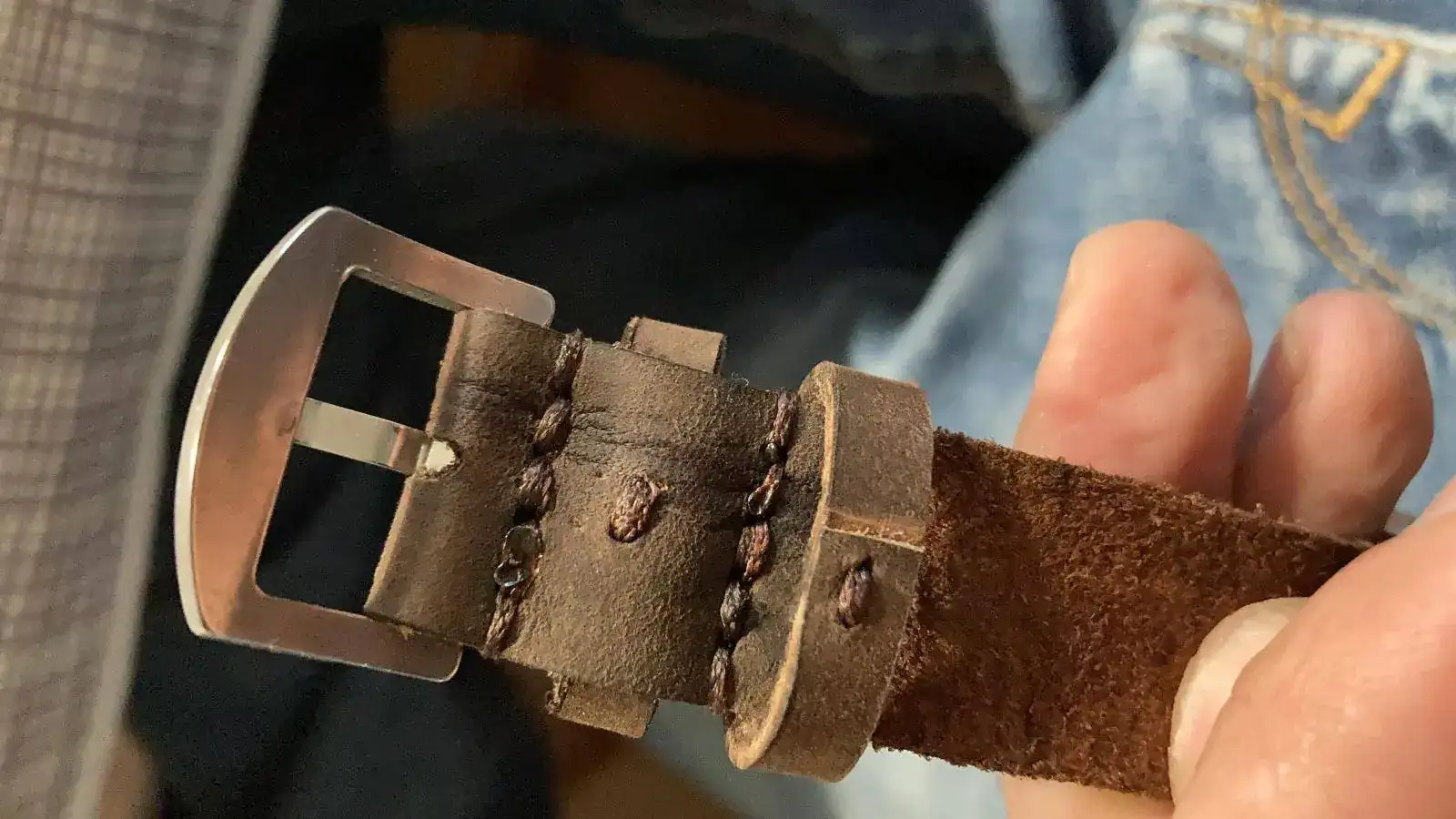 Y ahora la correa con su reloj, para que se vea un poco que la tonalidad del cuero le queda estupenda a ese dial: