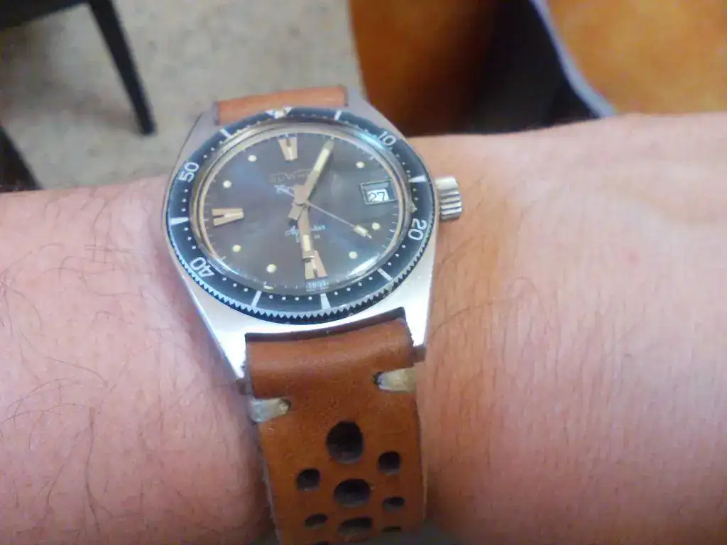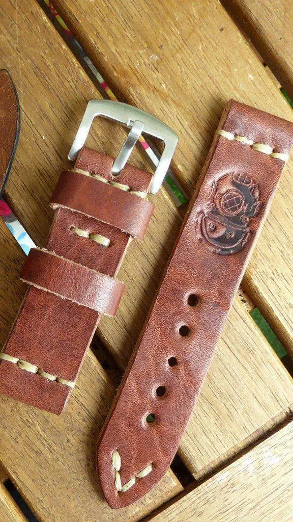 Una más del domingo, que estaba inspirado, con una rosa de los vientos y cosido haciendo forma de brújula, para pilots y relojes aventureros: