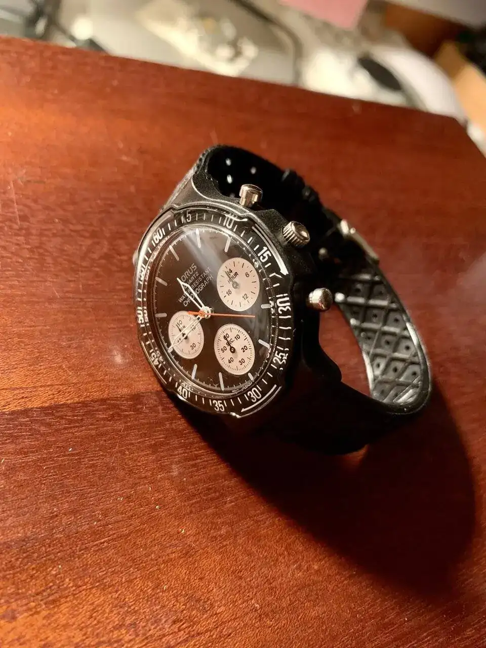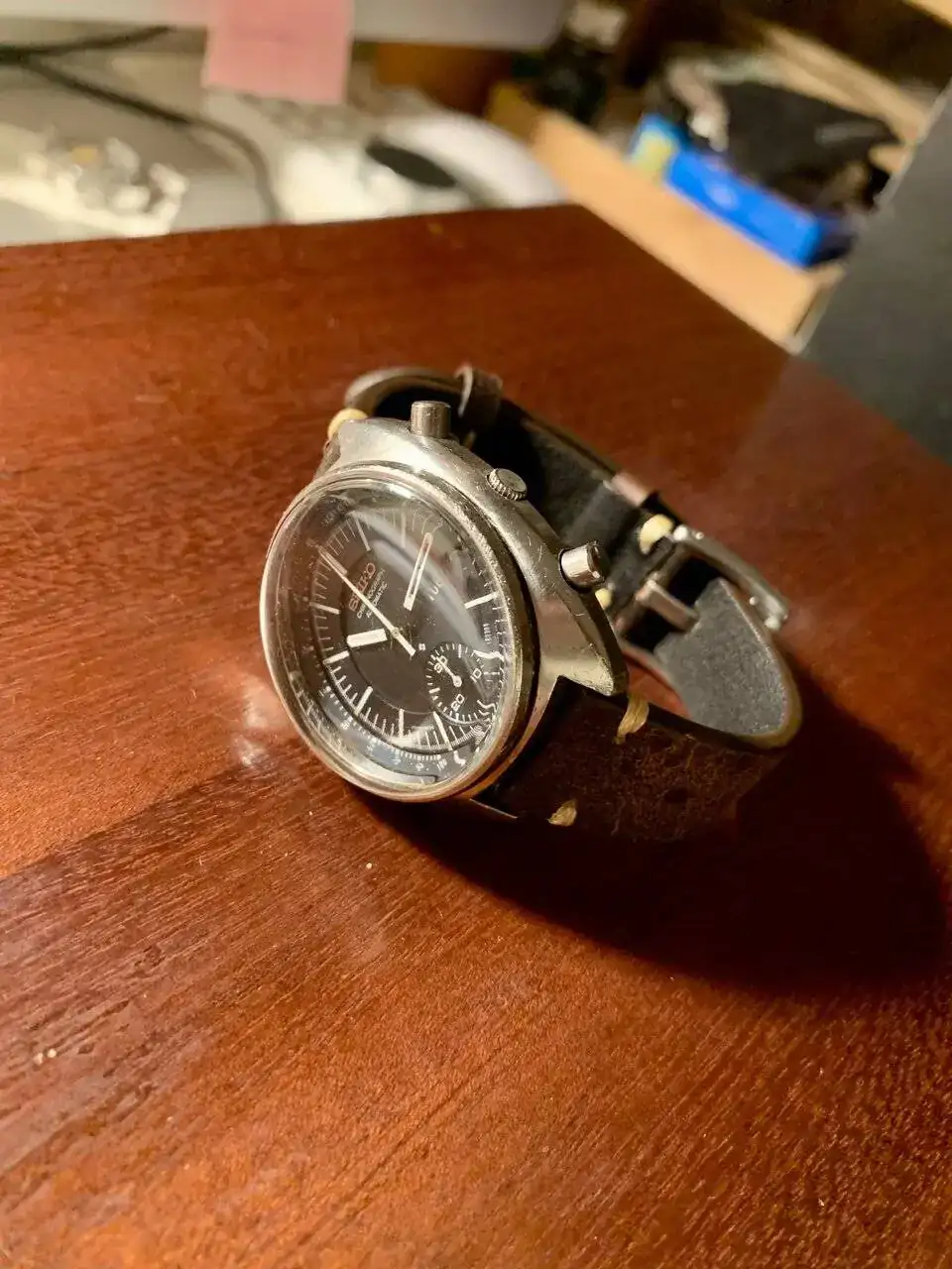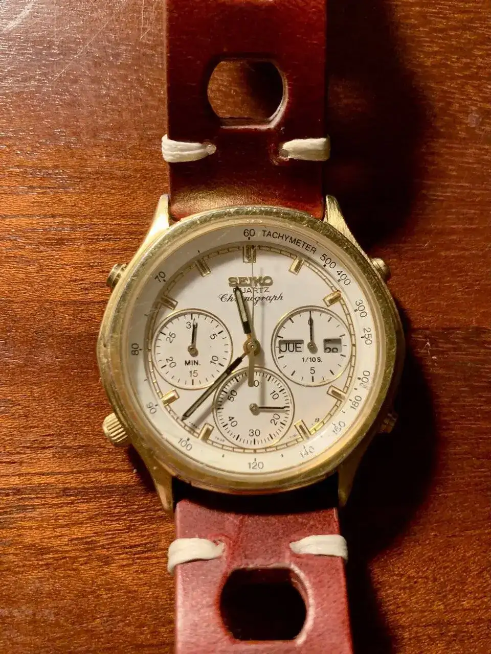 ¿Cuántas patentes tienen los de Seiko? Muchas. Sacar el primer crono de cuarzo es una de ellas. Roger Moore lo popularizó en la saga 007 (ya me gustaría tener uno de esos, pero a la gente se le va la pinza con los precios), y yo me conformo con este, uno parecido.