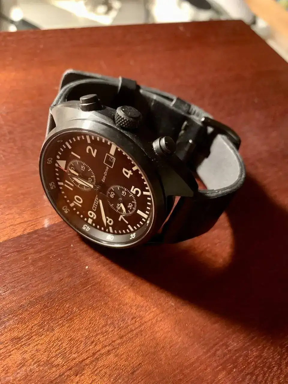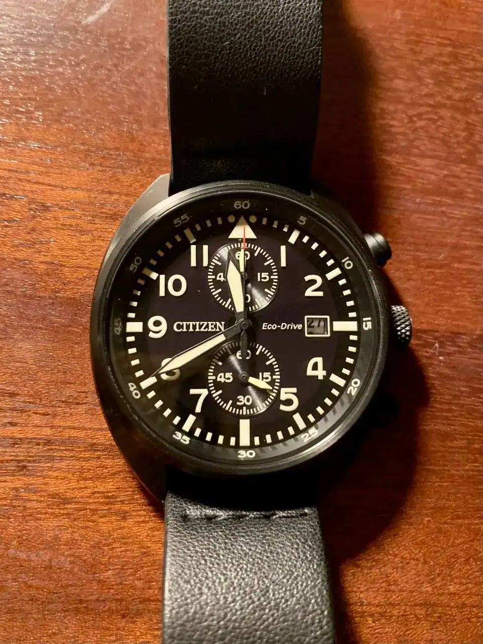 Un Citizen discreto, un all black muy correcto. Me falla que el cristal sea recto y no curvo, pero por lo demás, un reloj bonito.