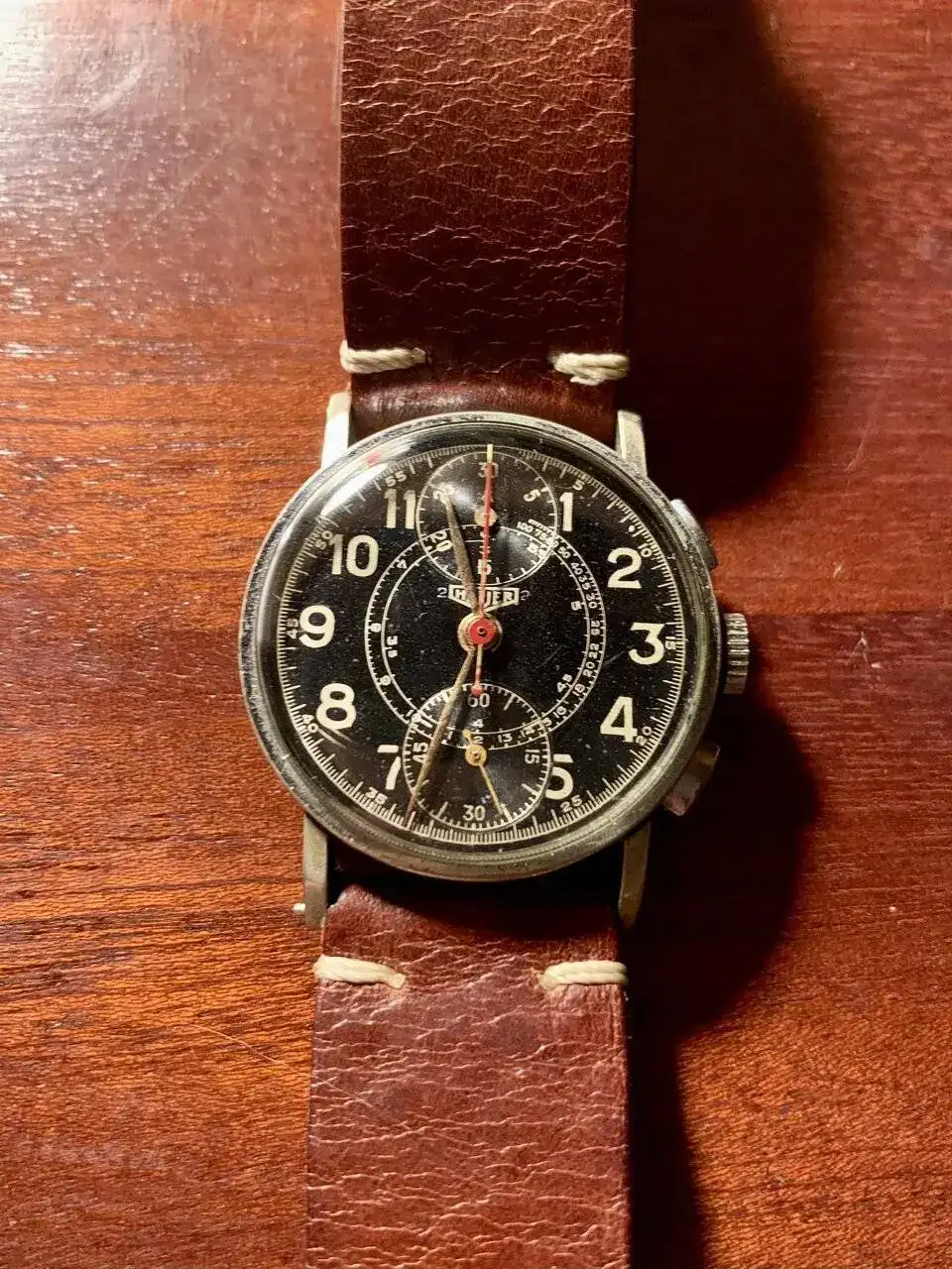 Poca información en redes. He encontrado dos vertientes que pueden coexistir. La primera es una imagen de un anuncio de Heuer de 1938 donde aparecen varios modelos y este, el de los números 2, como la versión económica.