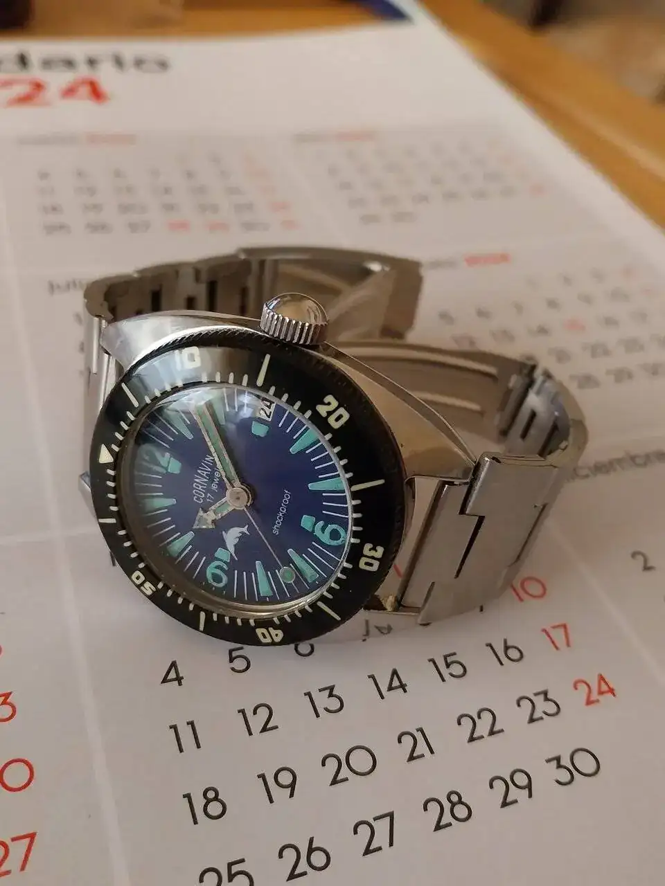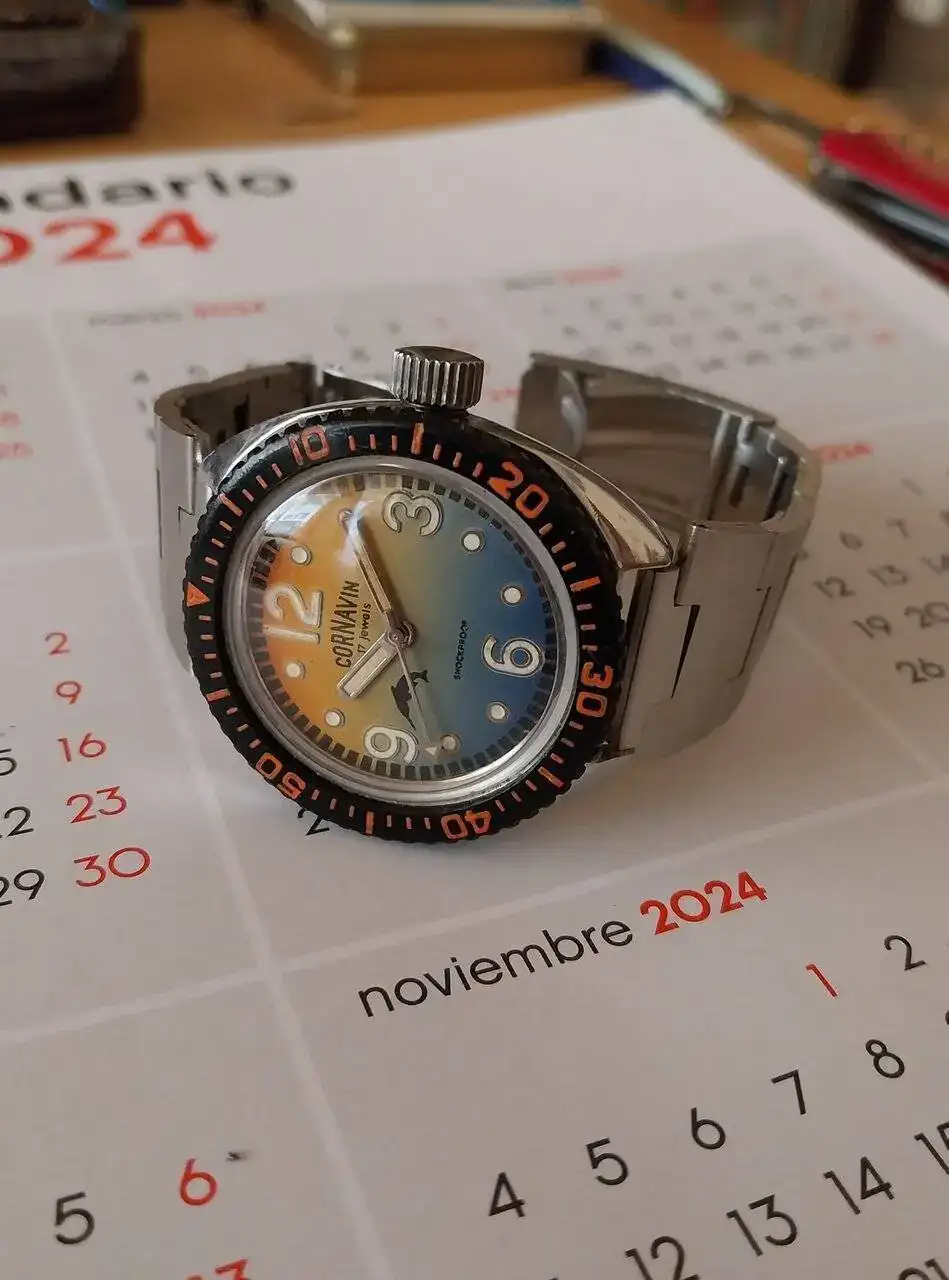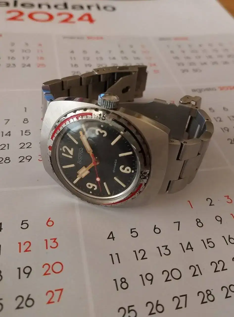 Poljot amphibia cornavin 20 atm. posiblemente el mas raro de mi coleccion, solo he llegado a saber de otro modelo, no esta claro si fue un prototipo, o un reloj que hicieron los empleados de la fabrica a nivel personal.
