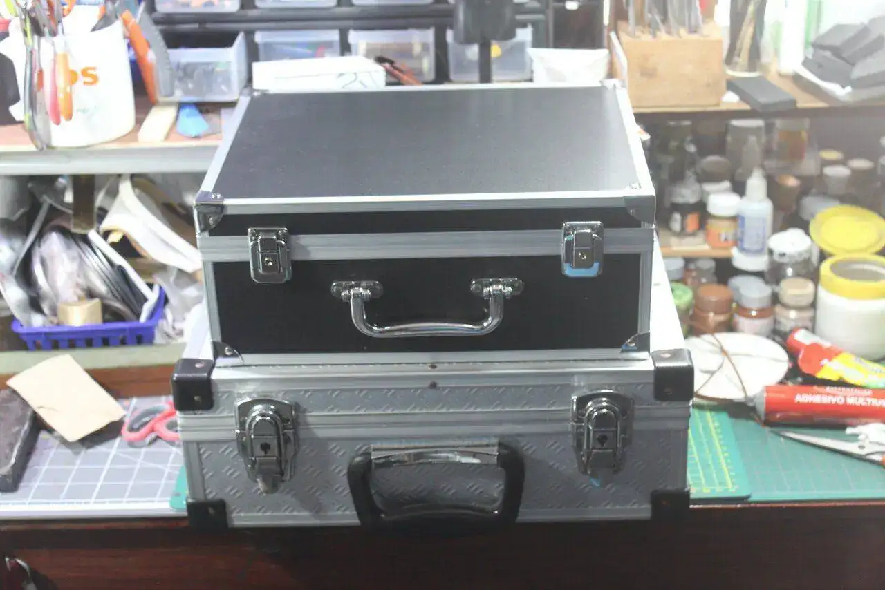 Comenzaremos con la "grande", la que fue mi primera caja, fiel a mi costumbre de "bicho raro", decidi adaptar una caja de aluminio con esponja y goma EVA (un material que se usa para hacer sandalias) para alojar mi "rejunte" relojeril.