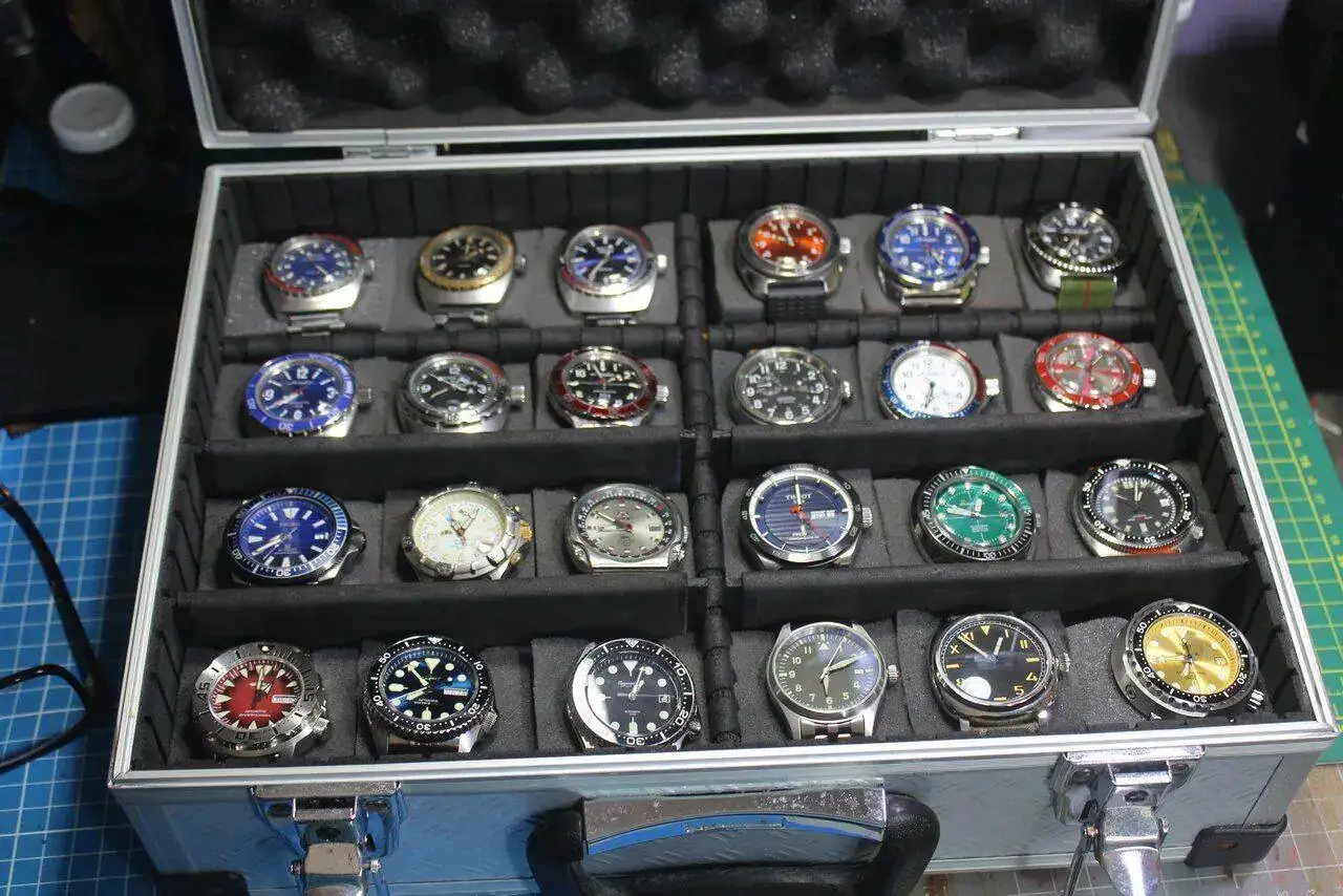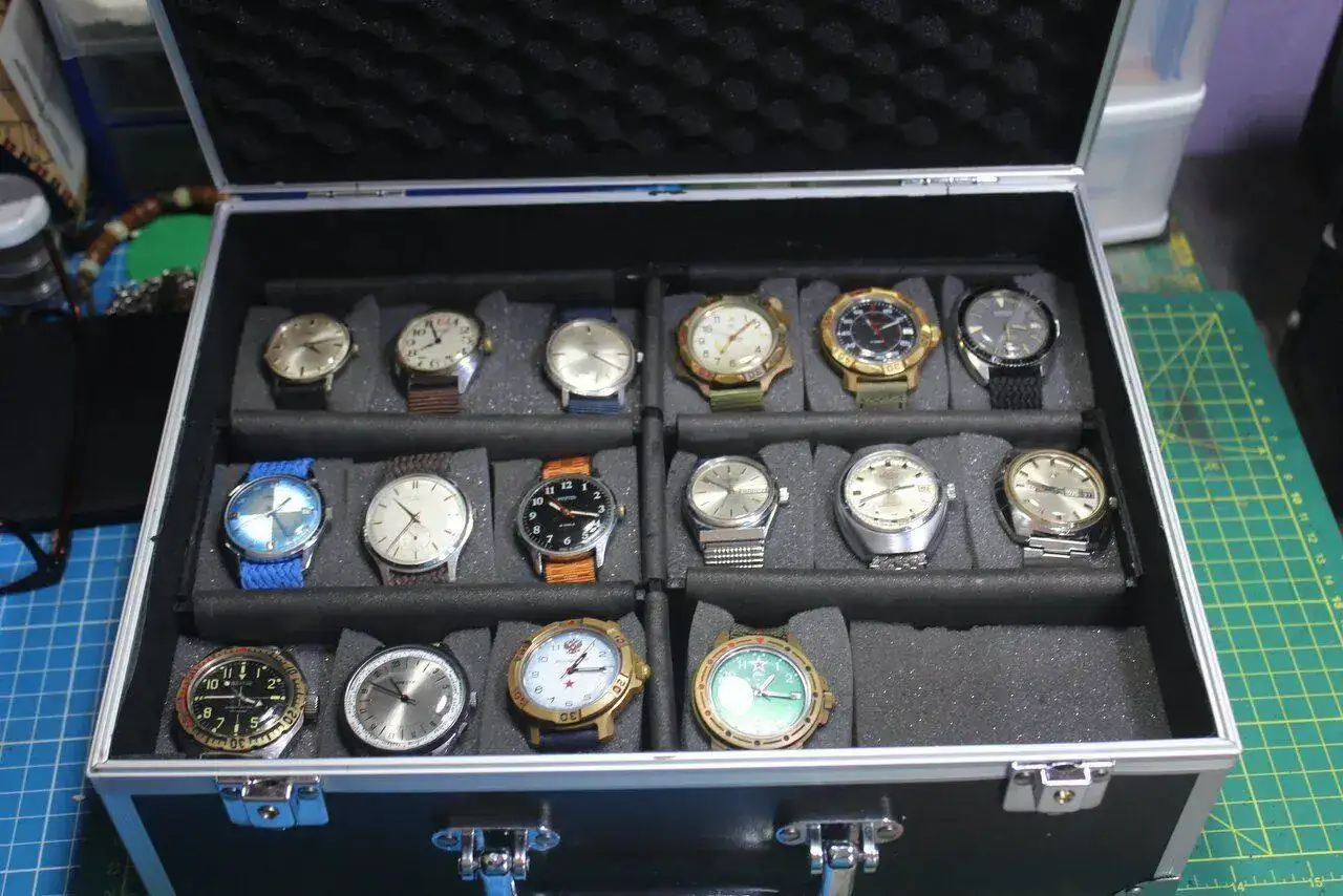 Cuando llegue a los dos mil mensajes y me volvi "Habitual", prometi hacerle fotos a mi "rejunte" relojero, pues en esos momentos por cuestiones de trabajo me hallaba mas liado que de costumbre, tambien tenia pendiente hacerme con mi segunda caja, pues la primera se me habia quedado corto.