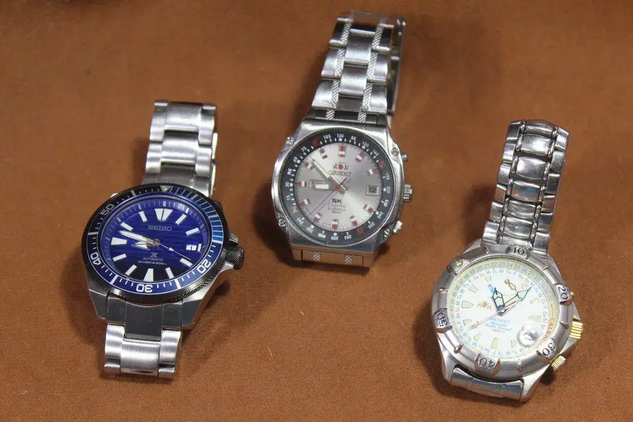 Despues siguen un par de rusos "brasseados", y un Sandoz, un diver antiguo que halle en un "tianguis" callejero y que mi relojero lo puso en condiciones, el Komandirskye de la correa verde, fue el que sufrio una rotura del muelle y Victor, mi relojero, "resucito" y lo volvio a dejar en condiciones.