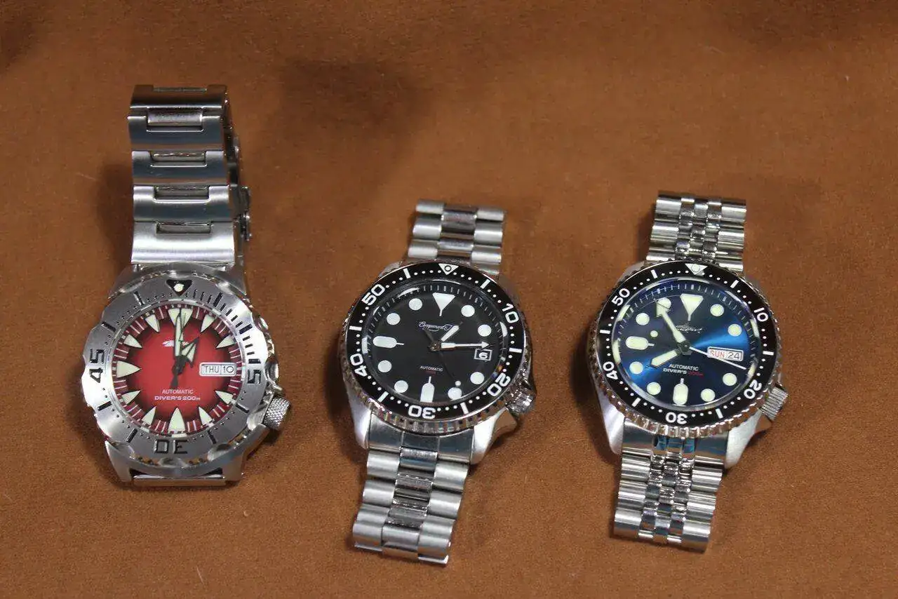 Ahora vienen los chinos, que junto con los rusos comparten mis amores, no se puede hallar mejor relacion precio calidad, dos versiones del SKX , y el Monster rojo, me encanta este trio.