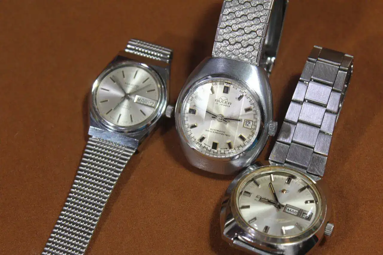 Estos son tres "abueletes" automaticos, un Haste, marca mexicana, hermana de Steelco, un Buler y un Enicar.