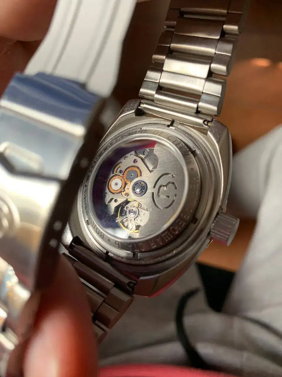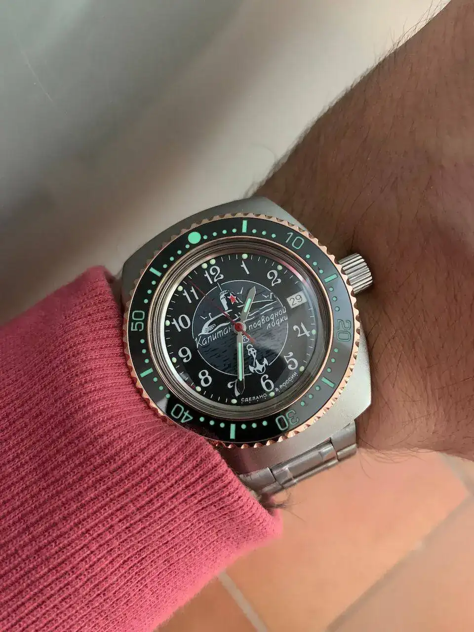 Igual os parece una barbaridad a un komandirskie de laton con la correa original y todo ponerle esa pedazo de tapa de (si hago caso a lo que pone en ruso) 200M, acero inoxidable y zafiro.... que es casi tan gorda como el reloj... y con un anillo ademas gordaco que tenia por ahi, ya que el planito del amphibia dejaba un perfil muy feo... pero me encanta xD