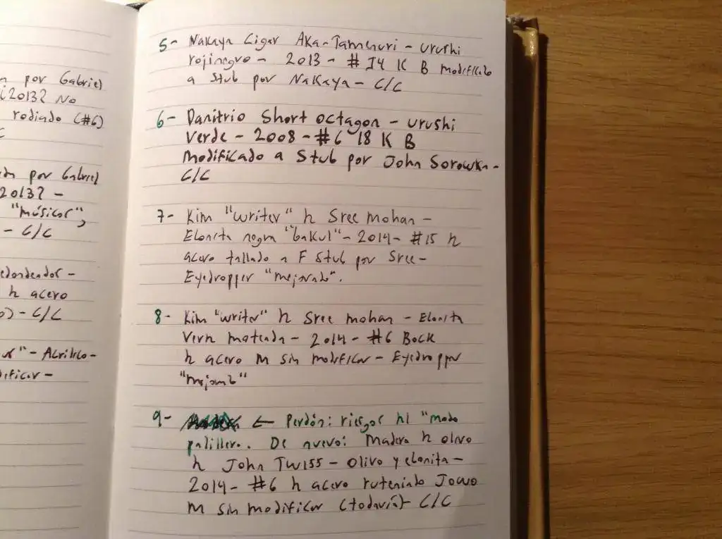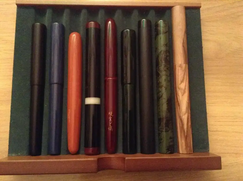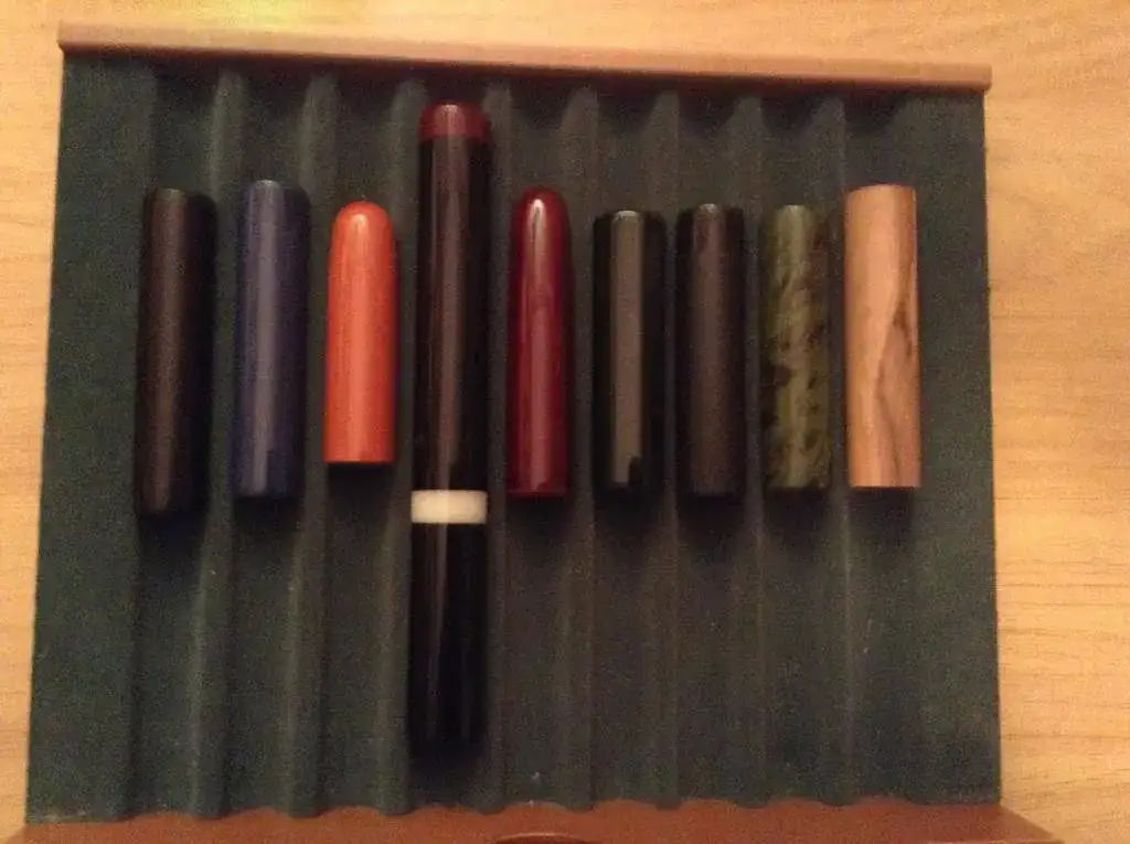 Son plumas de forma tubular sin clip. La Nakaya, la Danitrio y la Franklin Christoph son modelos establecidos; la Edison es modelo establecido pero con variación (los extremos redondeados). Las demás fueron hechas por encargo por artesanos muy capaces: Gabriel Clavijo, Sree Mohan y John Twiss.