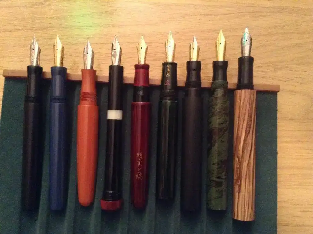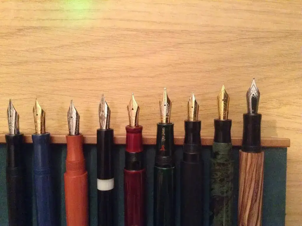 Aparte del hecho de planearlas uno mismo, este tipo de plumas tiene la ventaja de que usan plumines Bock o Jowo que son fácilmente intercambiables con otros de la misma marca (no de una a otra), así que puedes hacer variaciones. Como veréis, algunas tienen su plumín original y otras tienen actualmente los zapatos de una compañera.
