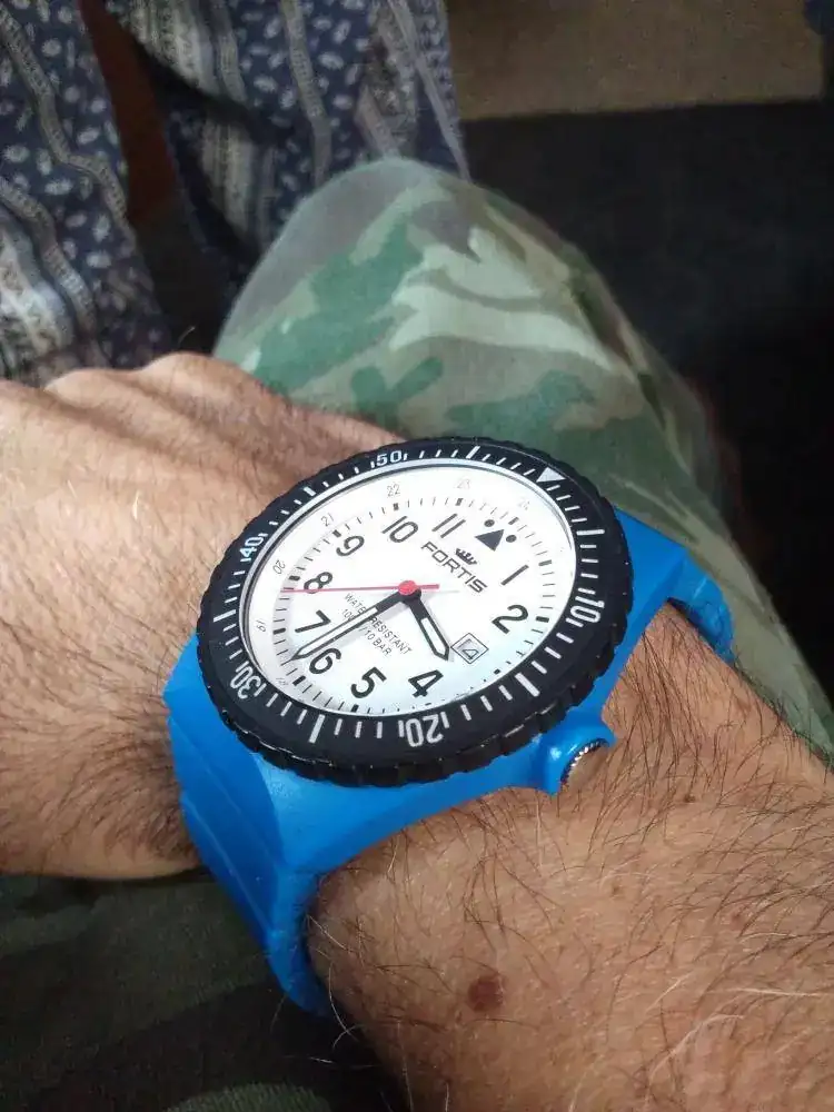 Todavía no se porque, lo vendí. Entonces me puse a buscar el Flieger Chrono como el que has puesto. Pero tras mucho mirar, al final me decidí por la evolución del modelo, el Aeromaster. Me parece más limpio de esfera pero con el mismo diseño contundente. Lo llevé durante mucho tiempo con correa de piel de la marca por que el armis no me parecía muy cómodo. Últimamente, lo he vuelto a poner para probar, y no se porque ahora si me lo veo bien y me parece muy cómodo.