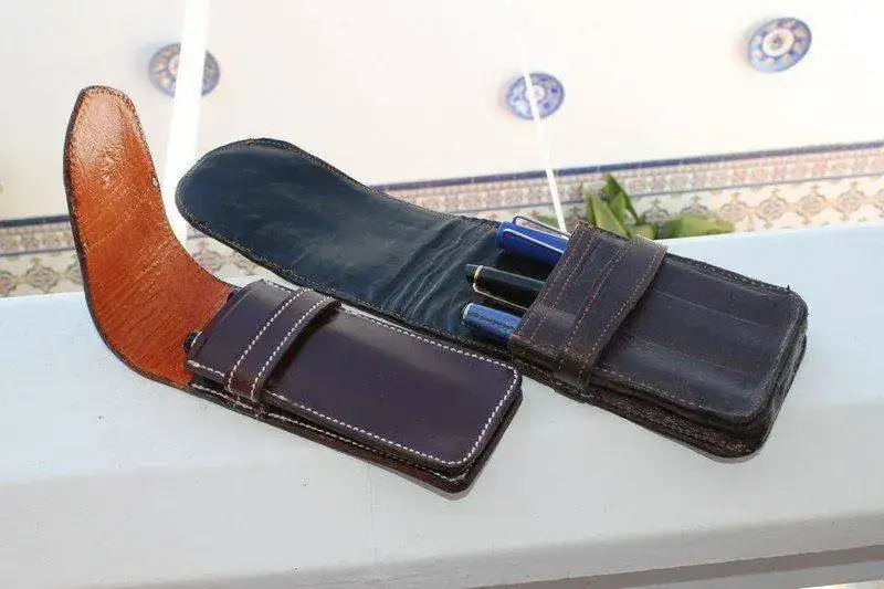 Voy a solventar una deuda contraída con Papish y de paso os enseño las fundas en las que porto a diario mis estilográficas según las necesidades. Son dos fundas artesanales, una de ellas realizada por un artesano de mi pueblo (pastor jubilado) y otra por un artesano de la provincia de Cáceres, con el que no quedé muy contento, su trabajo es sensacional, pero no es la persona más seria y con palabra que conozco, pero eso es otro tema.
