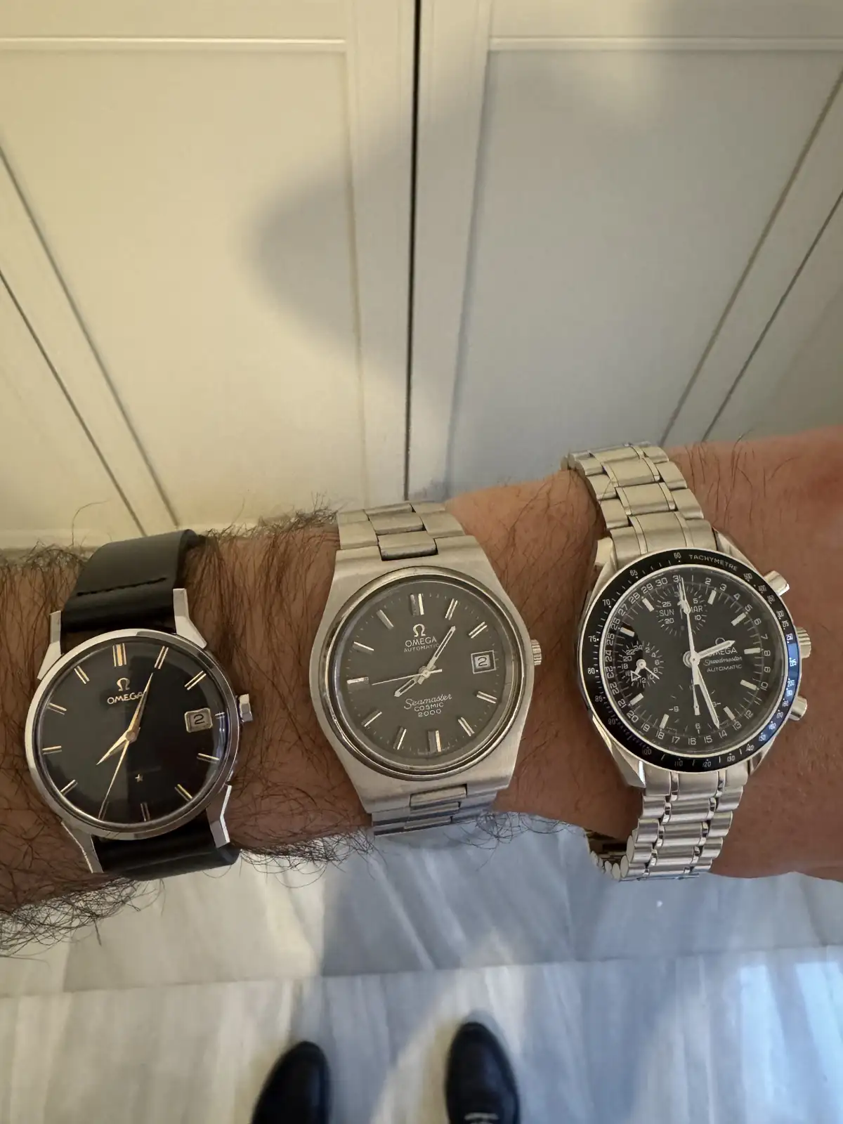 Mi colección, hablando de Omega, se traduce en tres modelos (hubo otros que ya no están): uno de cada una de las que considero las tres grandes patas de la marca —un Seamaster, un Constellation y un Speedmaster. Eso sí, ninguno es el modelo estrella, sino más bien segundones. Cosas que tiene uno: siempre me fijo en las variantes discretas de los iconos. Raro que es uno.