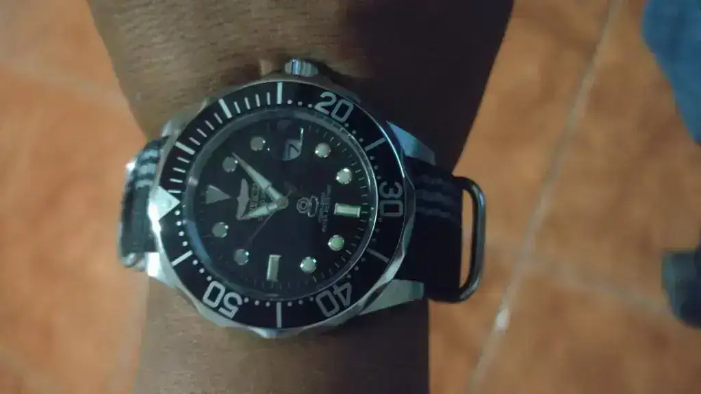 Lo primero que hice fue cambiar su extensible original por una NATO negra con gris. Me gusta como se ve el conjunto. la caja es lo bastante grande como para ponerle correas de goma del