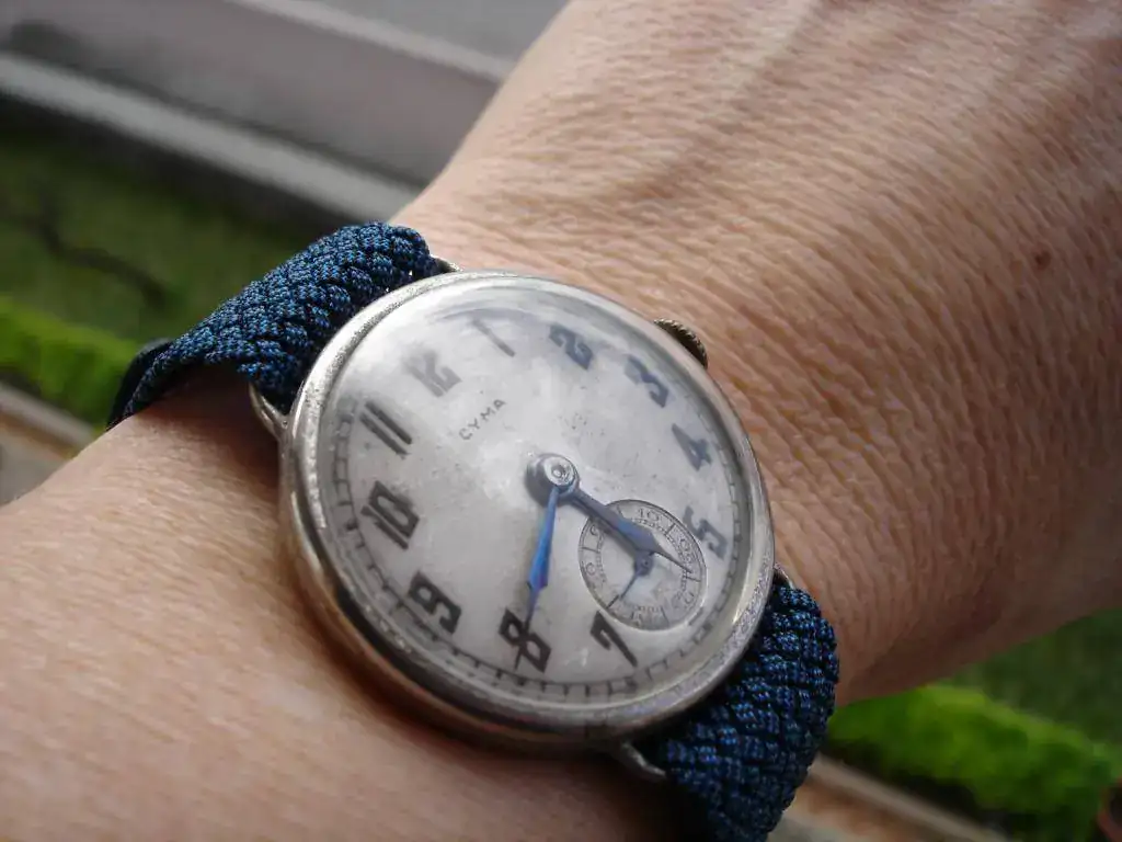 Del Cyma, además del calibre también, me gustan mucho sus agujas increíblemente azules y cómo sus números evocan al pasado reciente (a la sazón) de los relojes de bolsillo